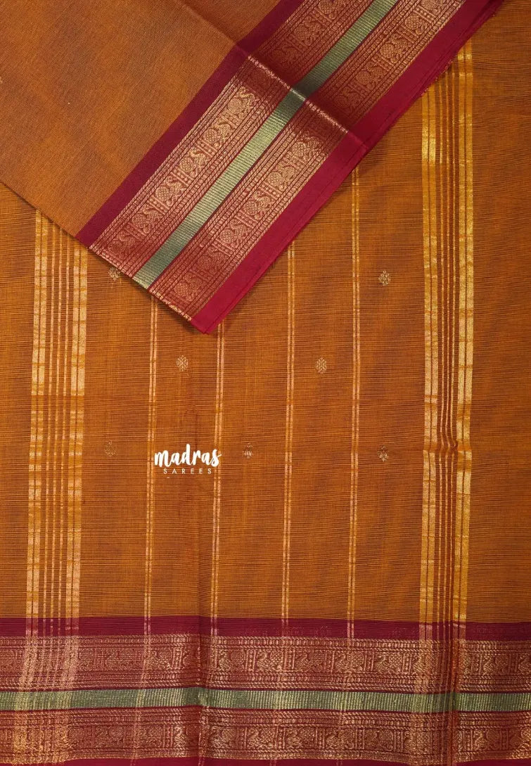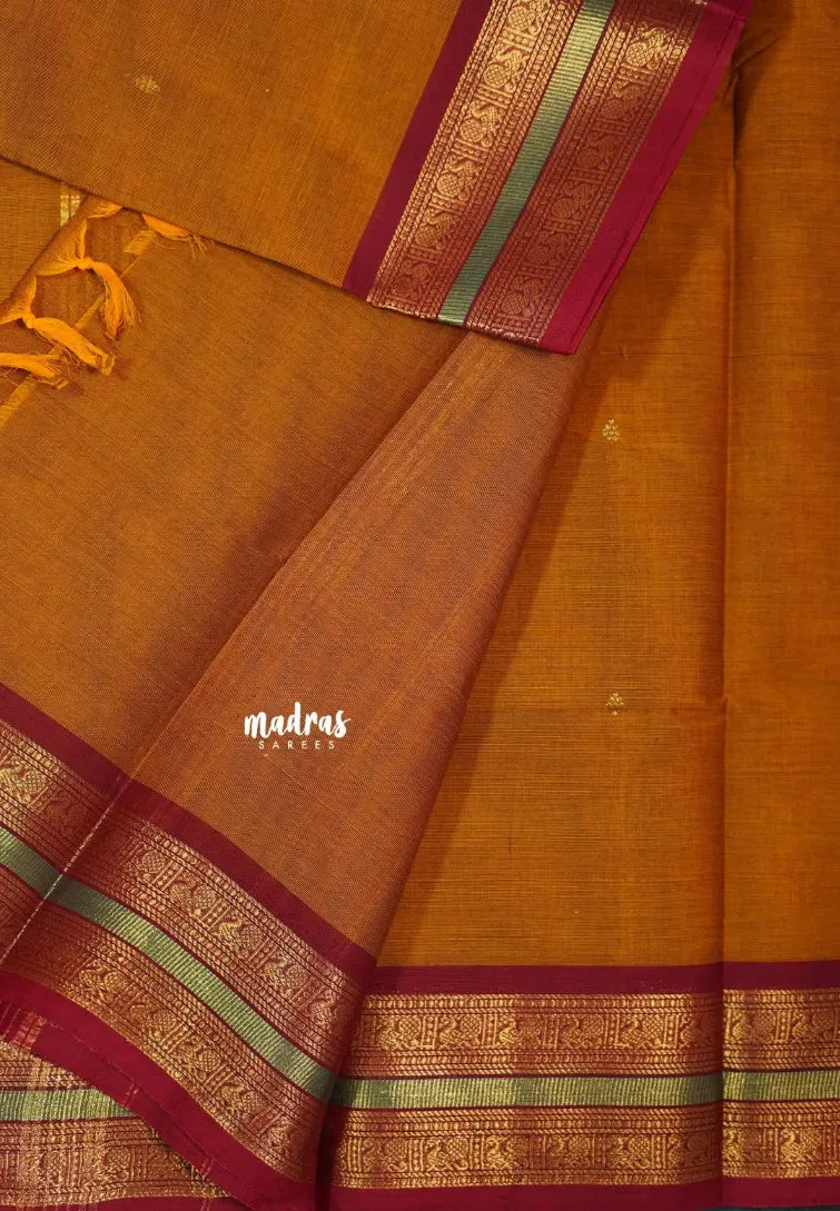 Mustard Orange - Karthigai silk cotton Multi Border with Buttas - Best for Wedding Functions