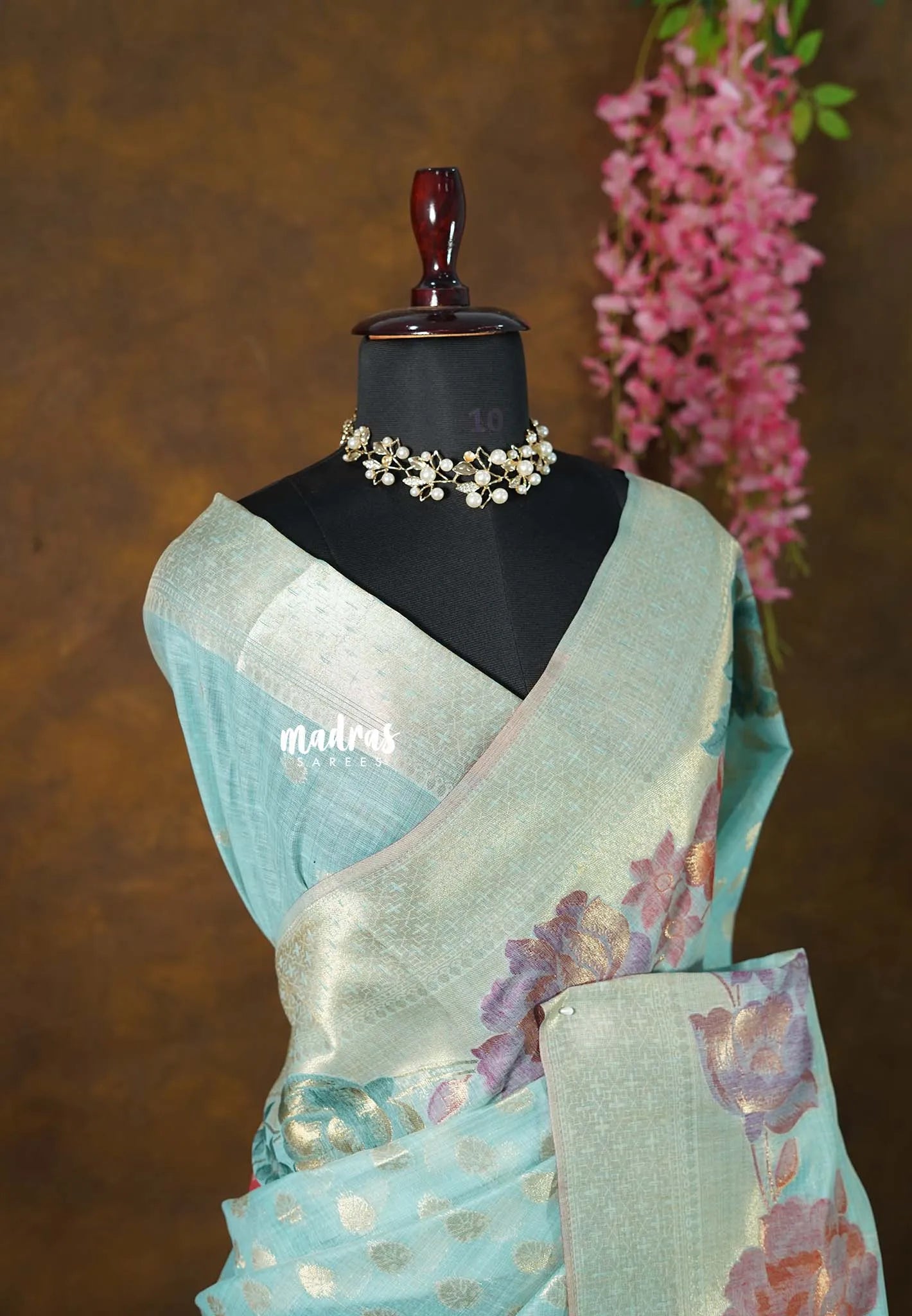 This elegant muslin silk saree features exquisite floral weaving that adds a soft, graceful charm to the drape. The lightweight texture ensures all-day comfort while offering a rich, luxurious feel. Delicate woven motifs across the body enhance its timeless appeal, making it ideal for women who love subtle elegance. The saree flows beautifully and carries a refined finish that suits both traditional and contemporary styling. Perfect for special occasions, festive gatherings, and graceful day events, this saree effortlessly blends comfort with sophistication.
