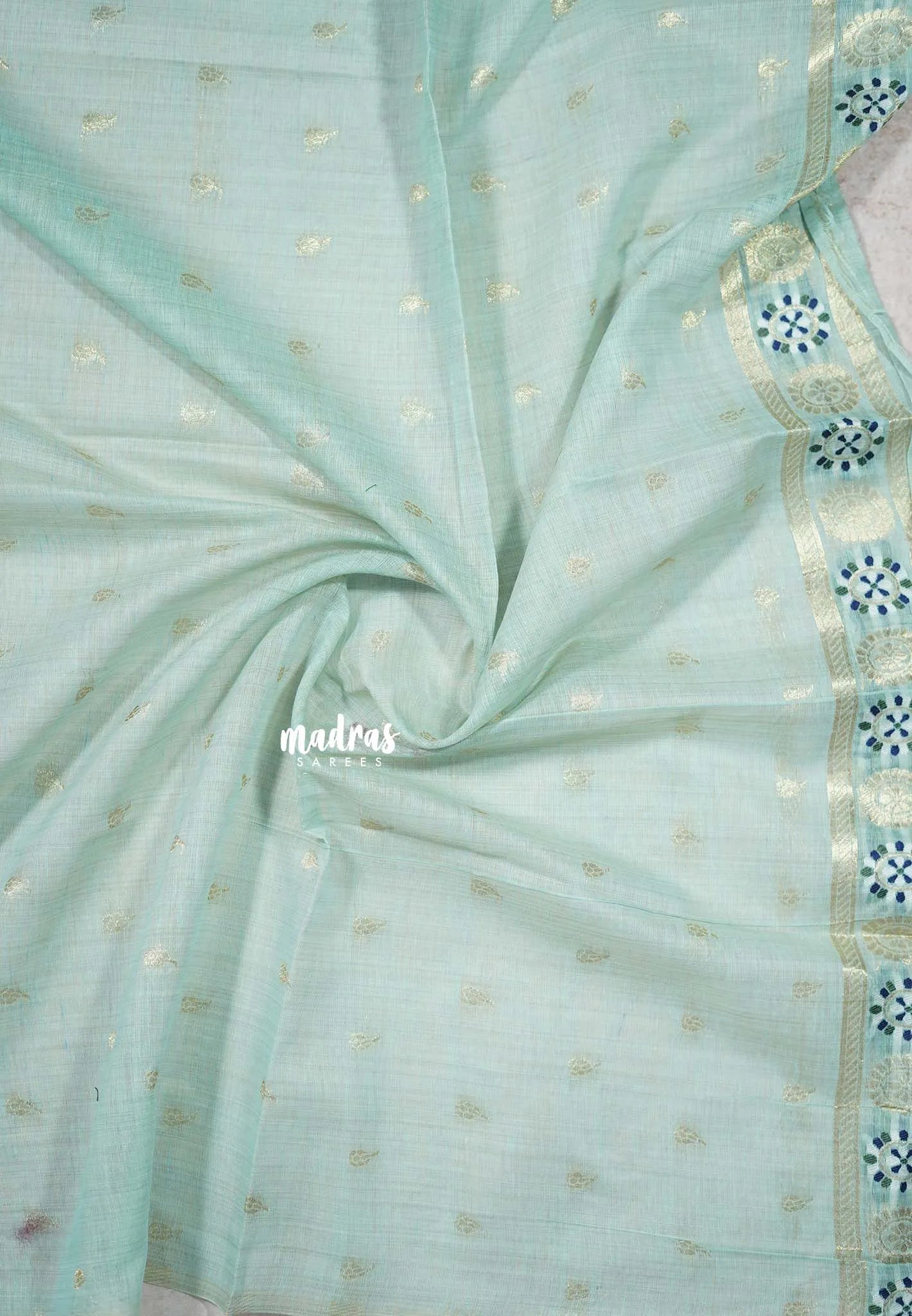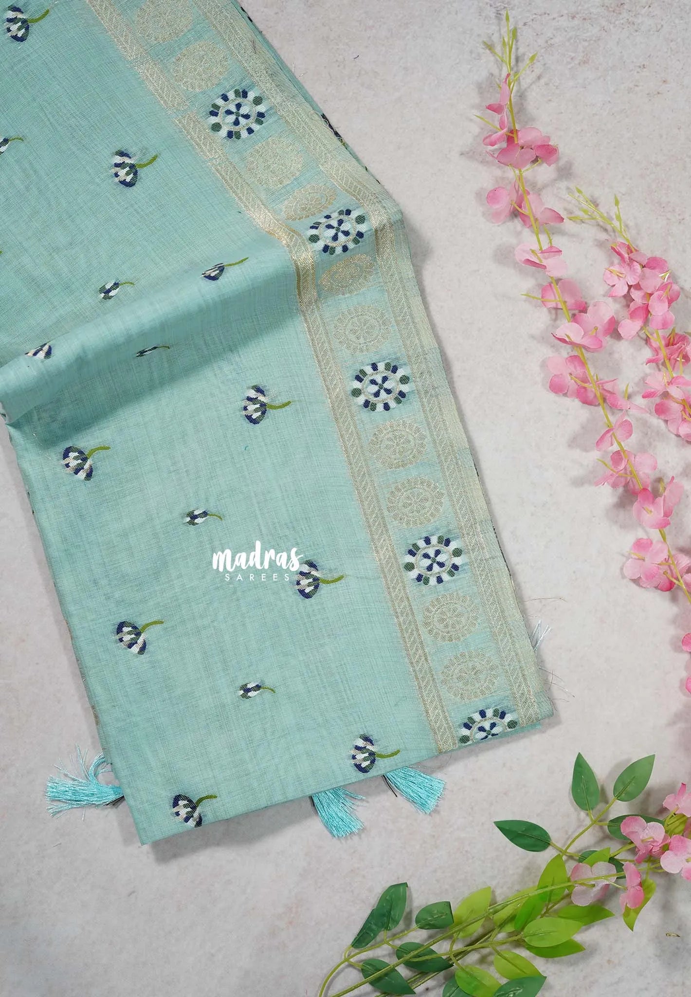 Muted Aqua Blue - Soft Muslin Silk with Floral Thread Weaving Buttas - Perfect for Office Wear