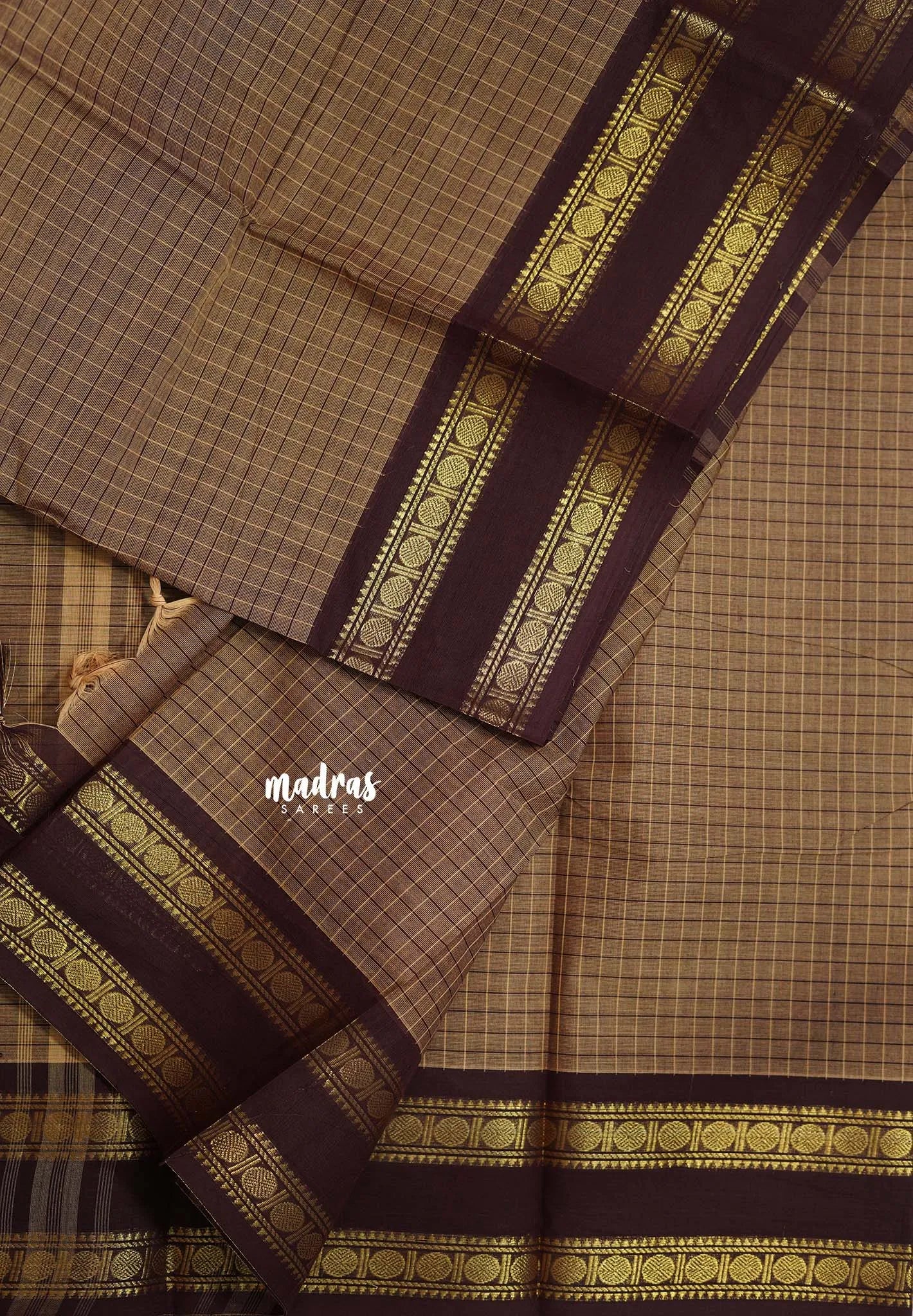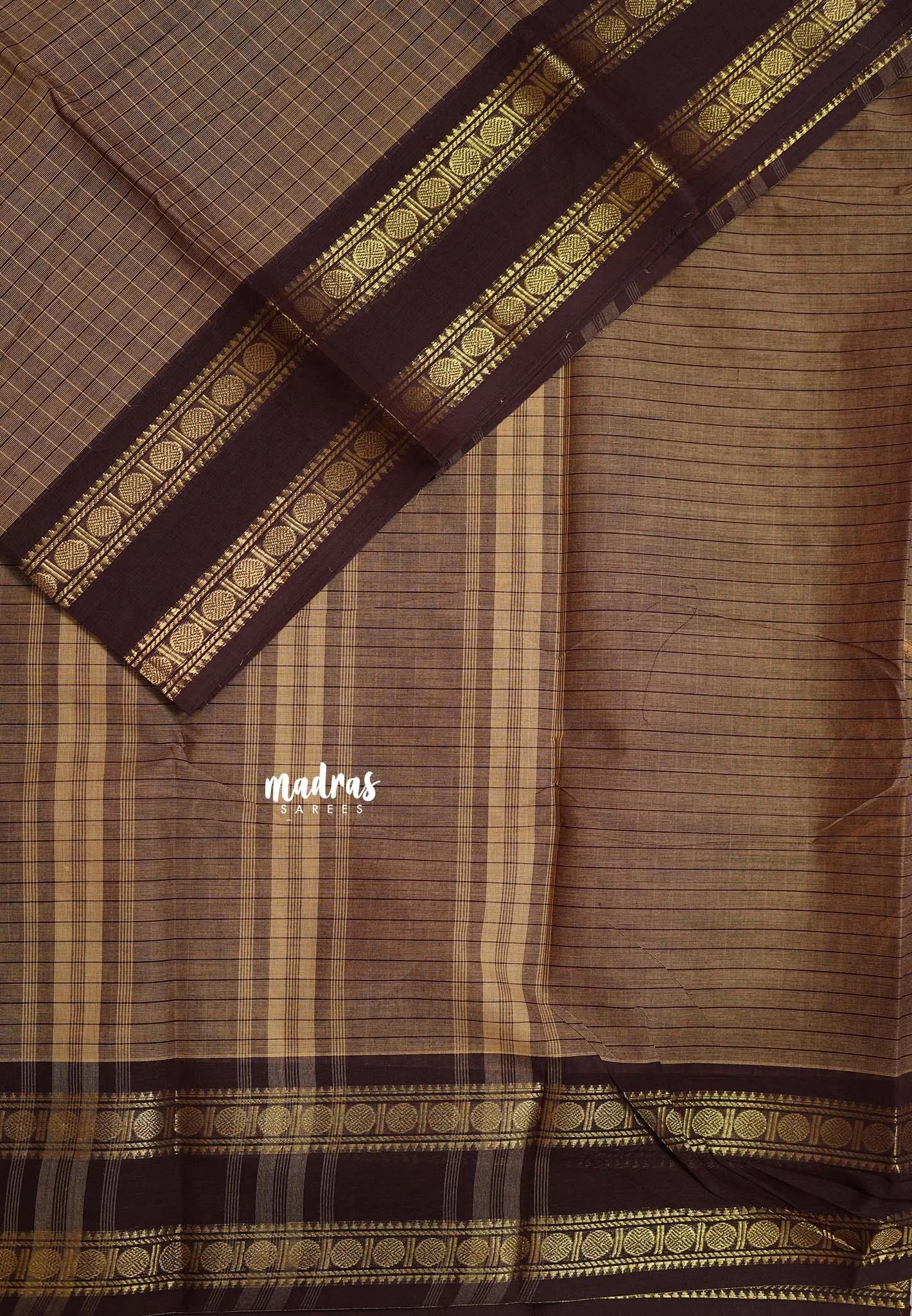 Muted Coffee Brown - Karthigai silk cotton rettapeta border with muthu kattam - Best for Wedding Functions
