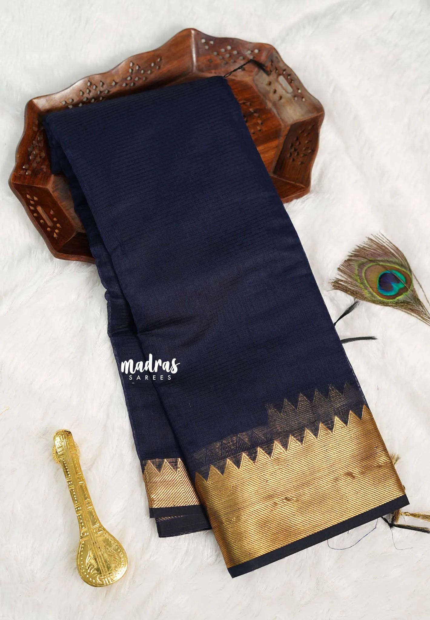 Navy blue - Maheswari - lightweigt cotton silk with rich gold border