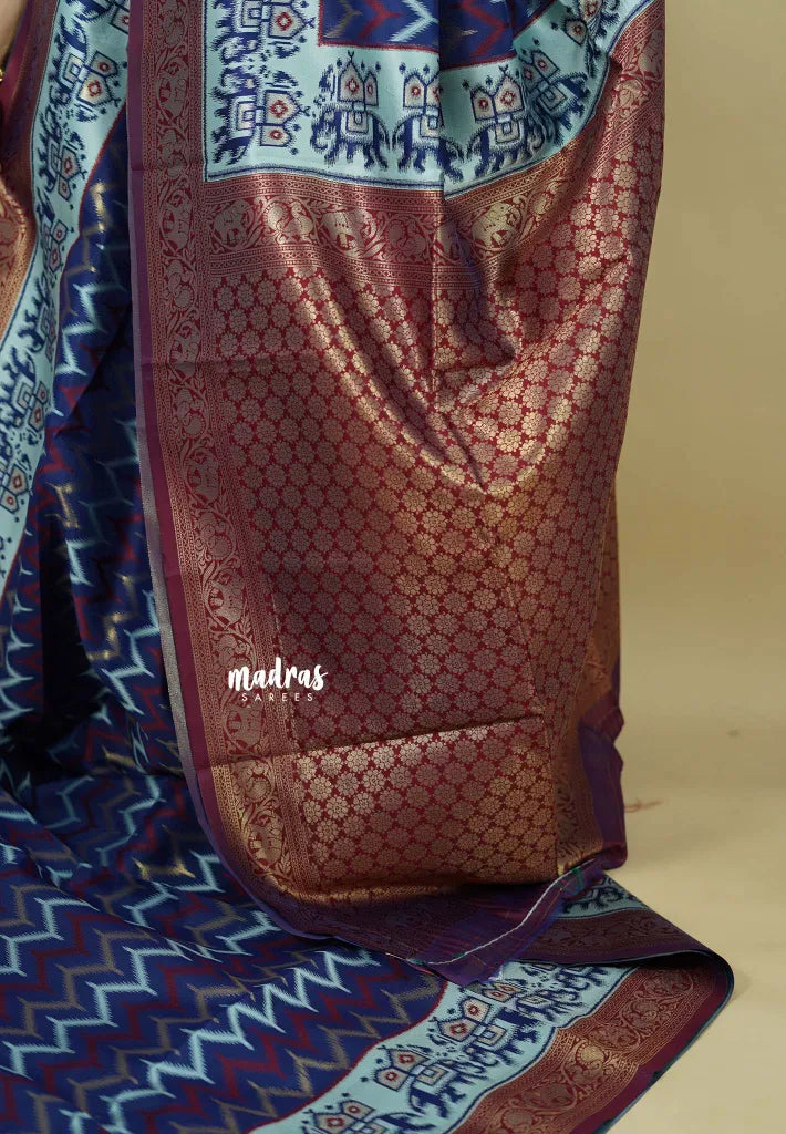 Kanchi semi Silk Saree with grand intregate pattern weaving all over the body. Semi silk sarees represent modern variations of classic silk sarees influenced by the need for luxury and comfort in silk sarees at very affordable prices.