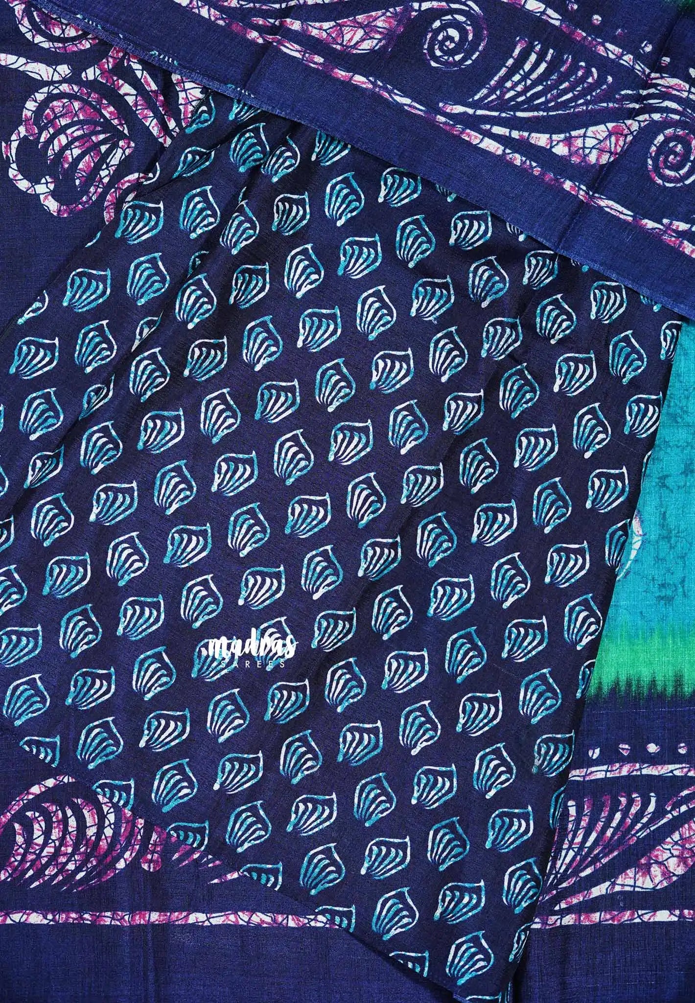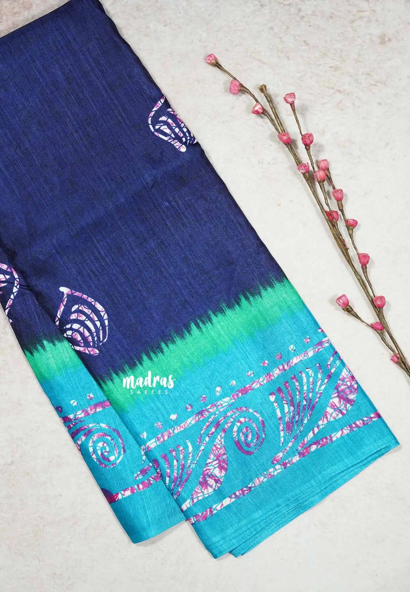 Navy Blue - Uniform sarees Malgudi printed silk with batik prints