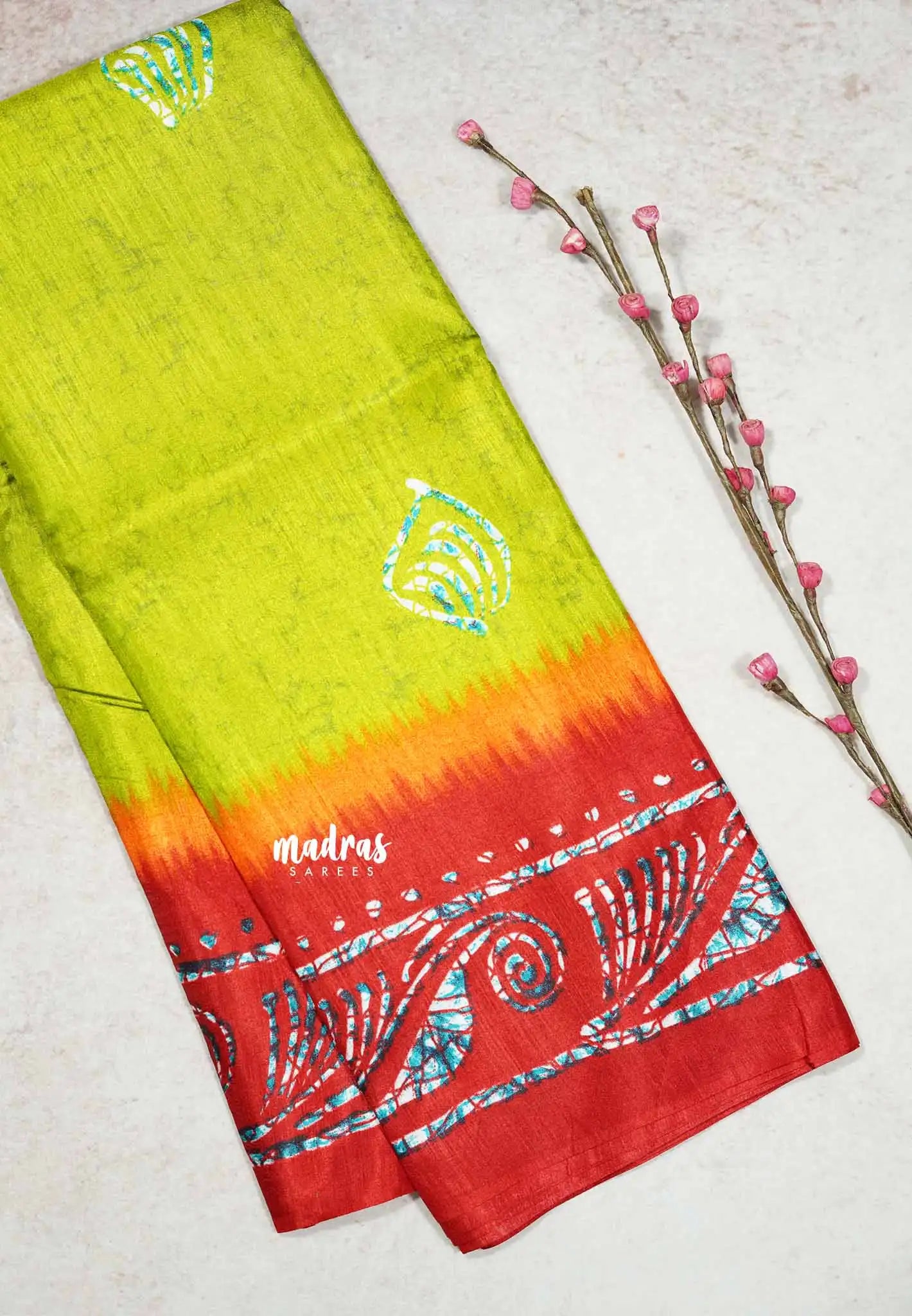 Neon Green - Uniform sarees Malgudi printed silk with batik prints