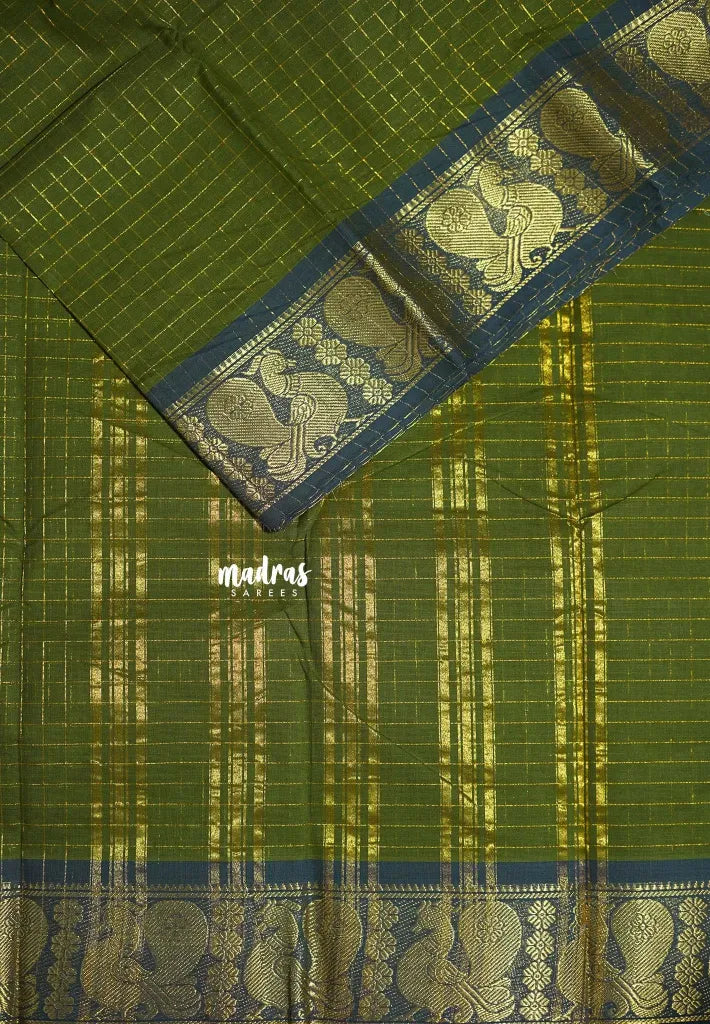 The Fusion Kanchi Cotton Sungudi Checks Sarees blend traditional Kanchi cotton fabric with the timeless charm of Sungudi checks, creating a stylish yet classic look. These sarees are known for their soft texture and breathability, making them perfect for all-day wear. The beautiful checks pattern, paired with the rich cultural heritage of Kanchi cotton, ensures a sophisticated and elegant appeal. Ideal for festive occasions, work events, or casual wear, these sarees offer comfort and style in one package.
