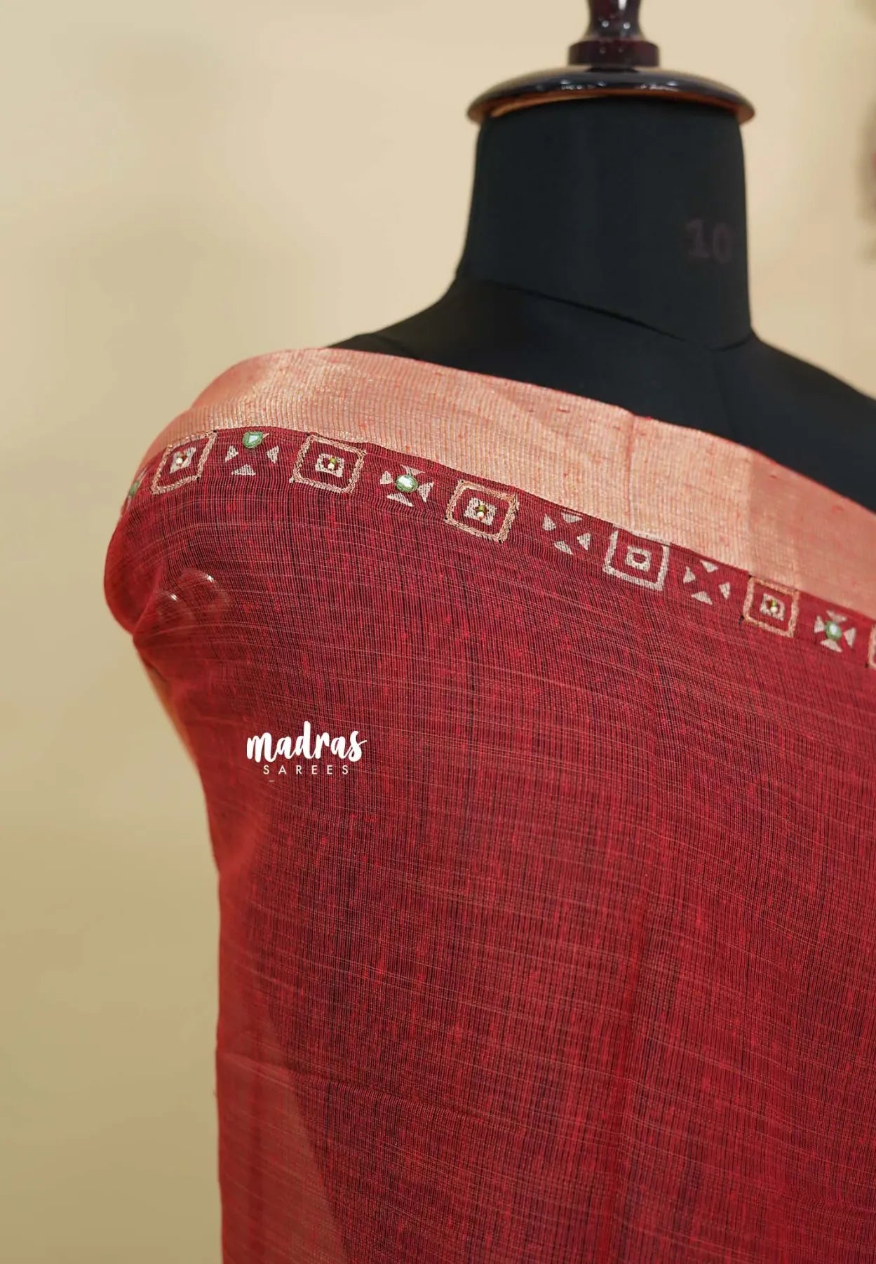 Fabric: Made from luxurious jute tussar silk, offering a smooth and rich texture.