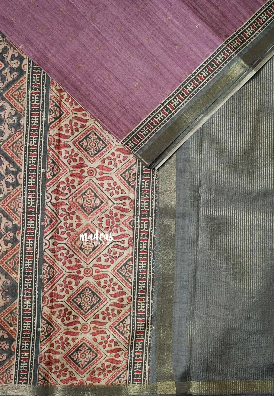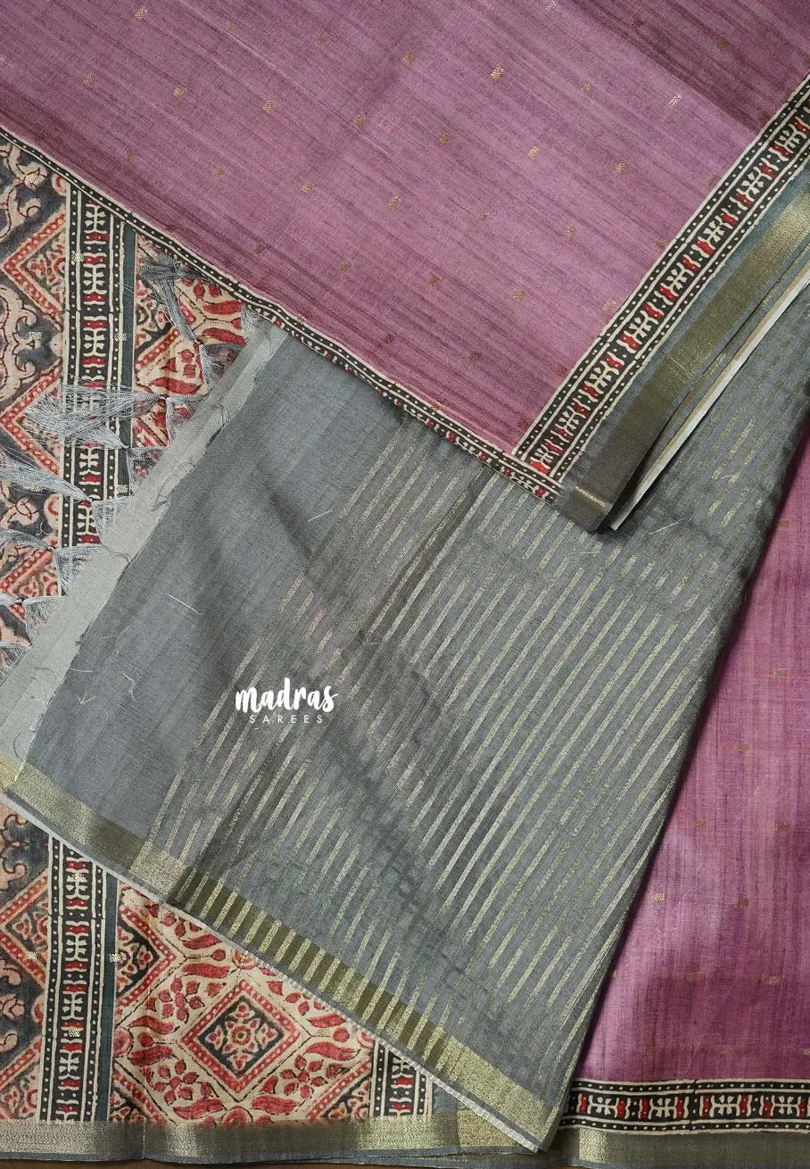 Onion Pink - Rukmani - Premium Tussar Silk with Zari Buttas Rich pallu and blouse - Perfect for tea party