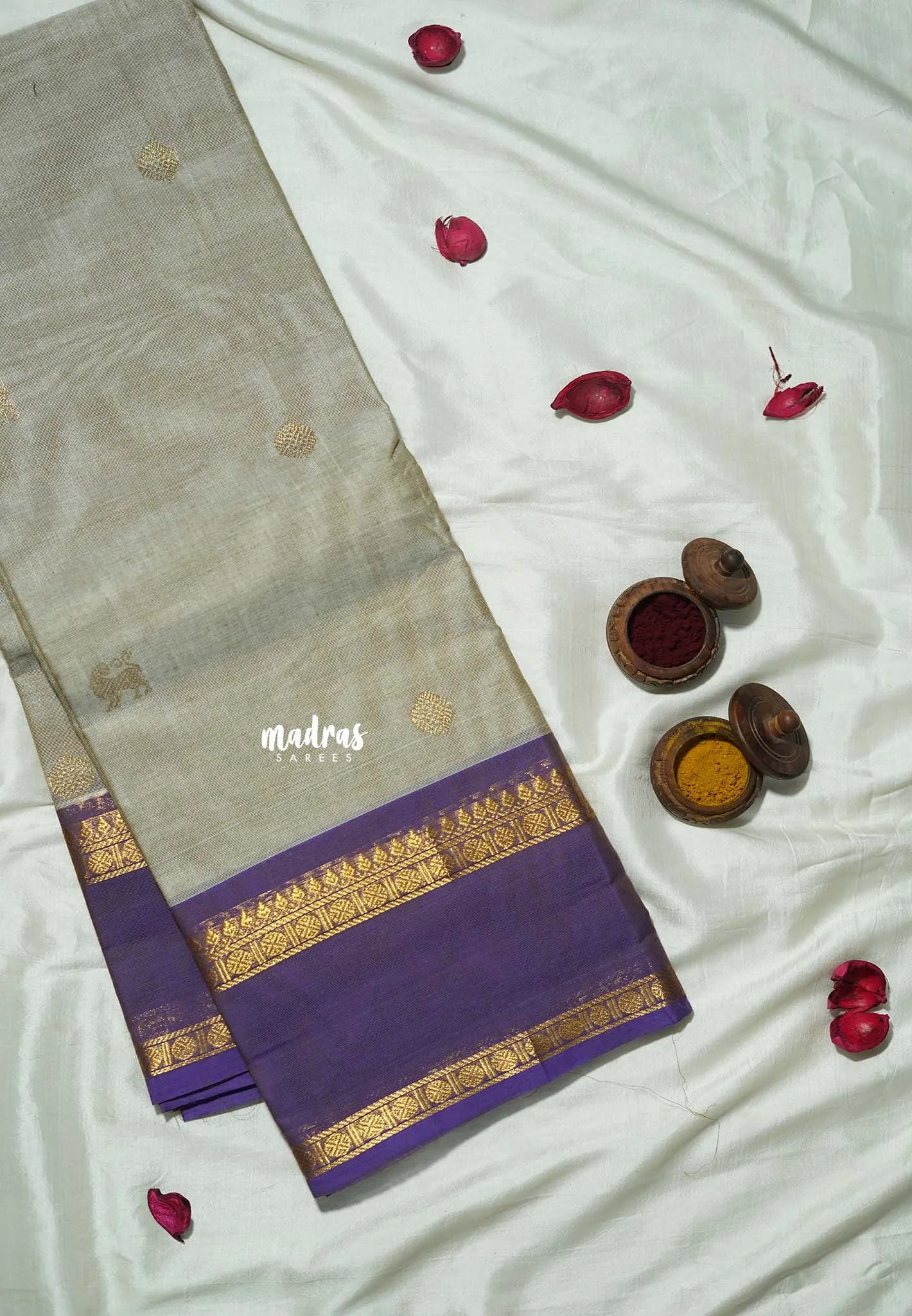 Pastel Chocolate Brown - Korvai silk cotton saree with Rettapetta Rudraksham Border - Best for Festive Wear