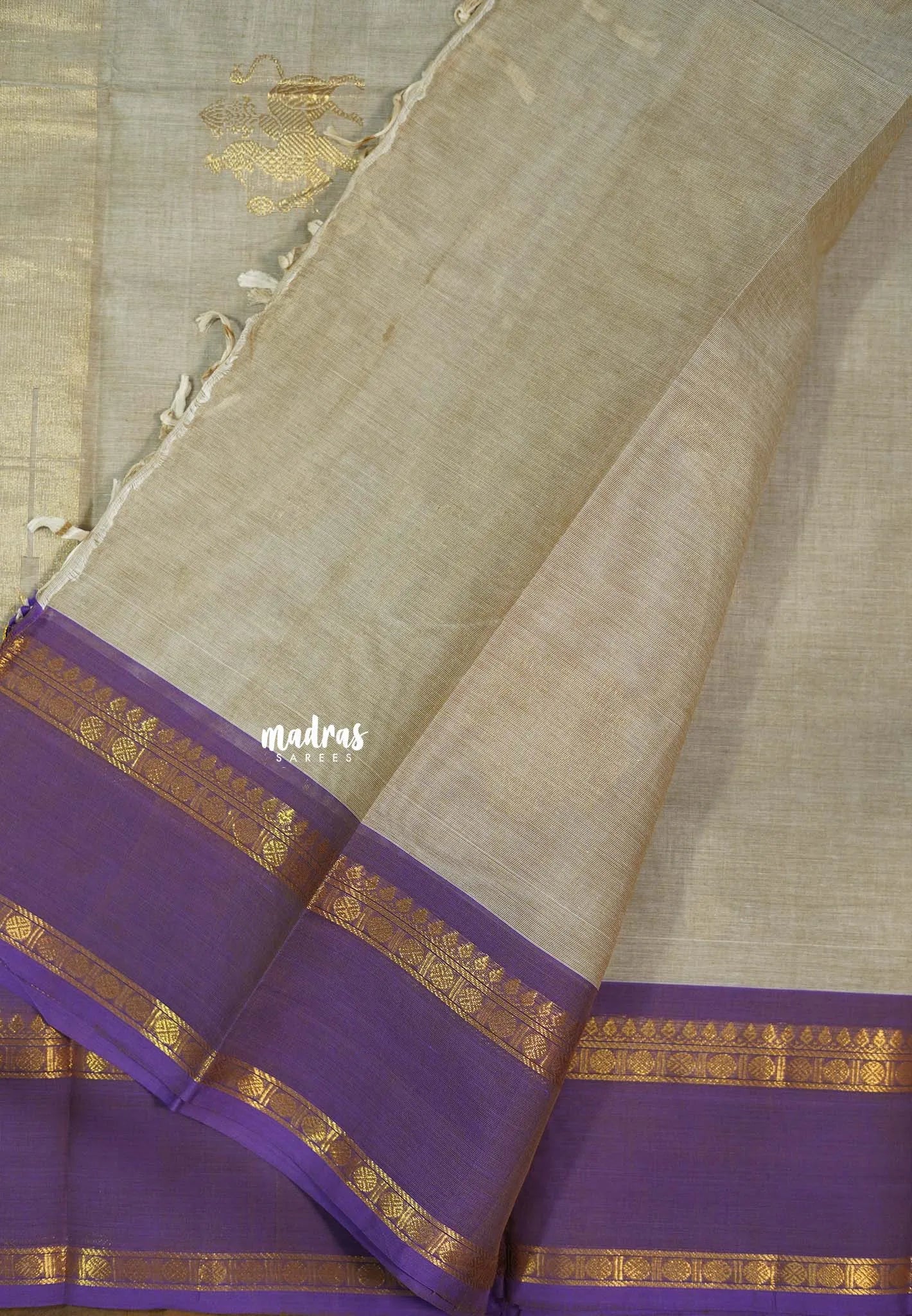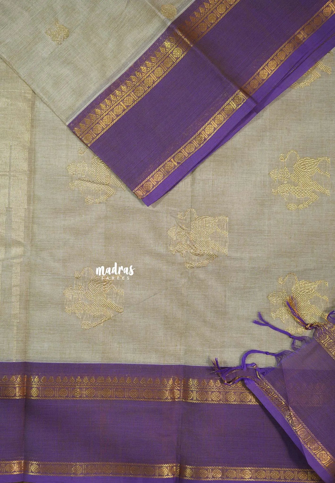 Pastel Chocolate Brown - Korvai silk cotton saree with Rettapetta Rudraksham Border  - Best for Festive Wear