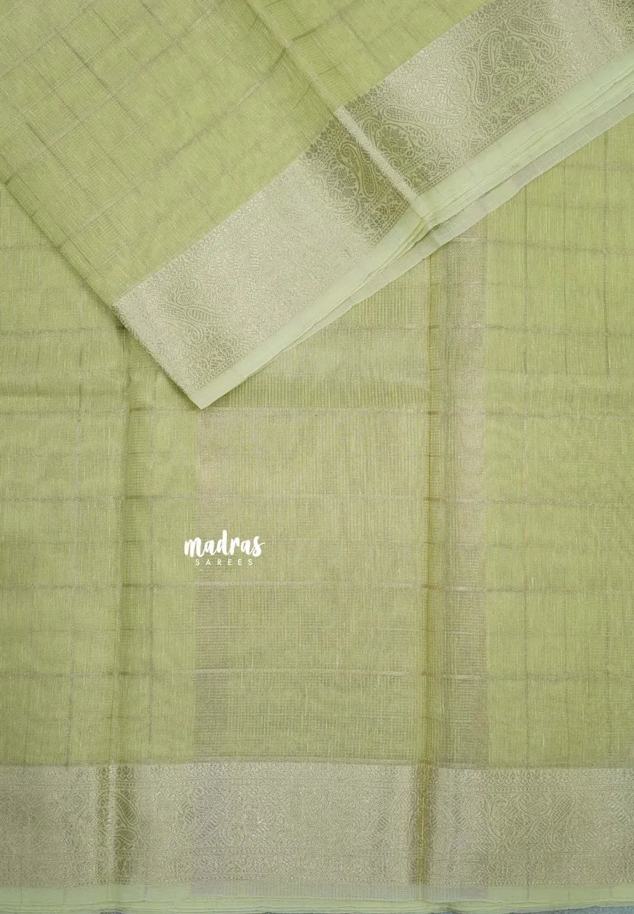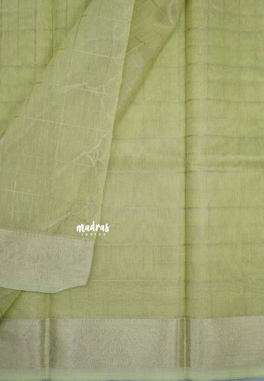 Pastel Green - Kushboo - Banarasi Kota Tissue Silk Zari Checks with Zari Border