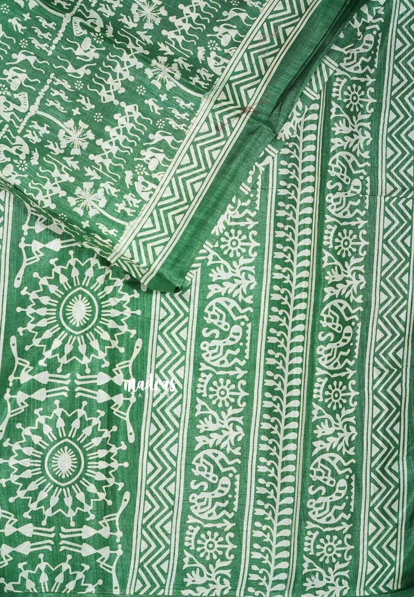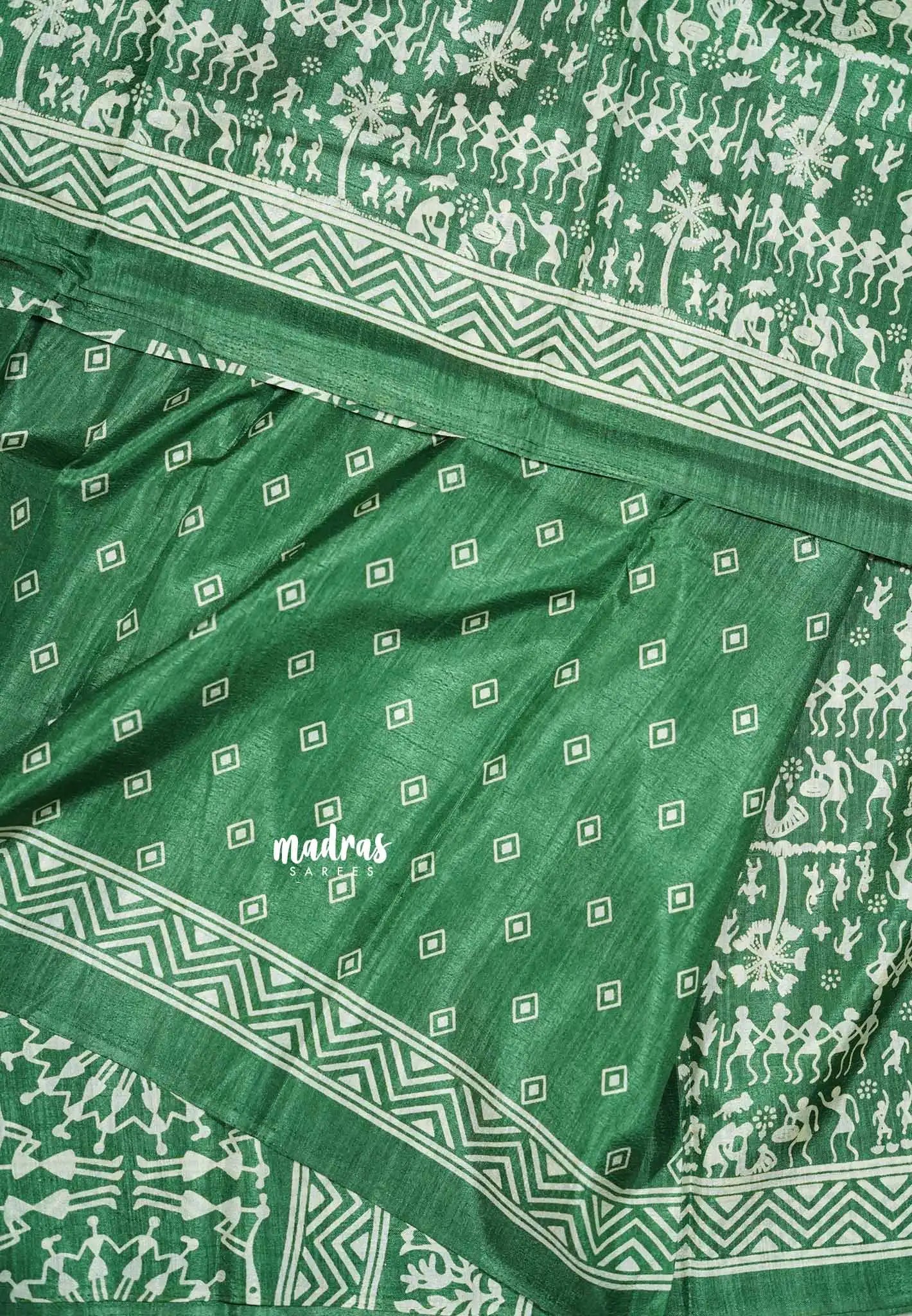 Pastel Green - Uniform sarees Malgudi printed silk warli prints