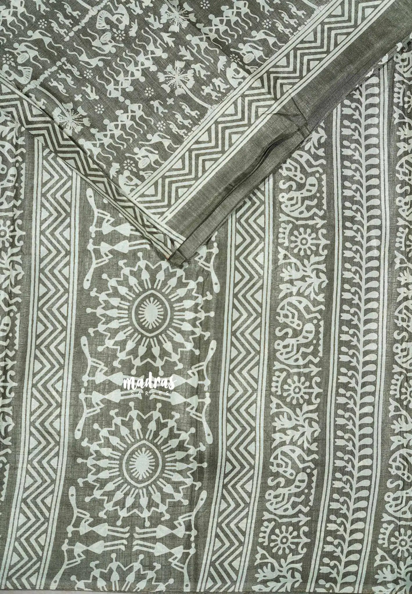 Pastel Grey - Uniform sarees Malgudi printed silk warli prints