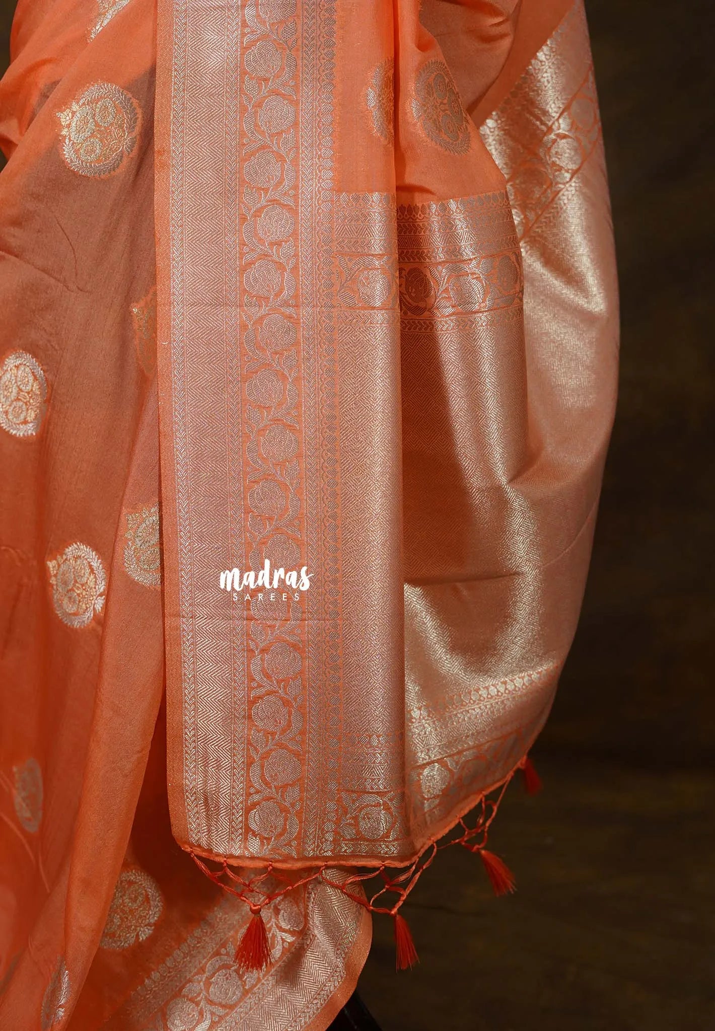 Introducing our classy true Banarasi Chinon Silk saree, designed to captivate with its eye-catching colors. This exquisite saree is perfect for all functions and occasions, from weddings to festive celebrations. The intricate weaving showcases the rich heritage of Banarasi craftsmanship