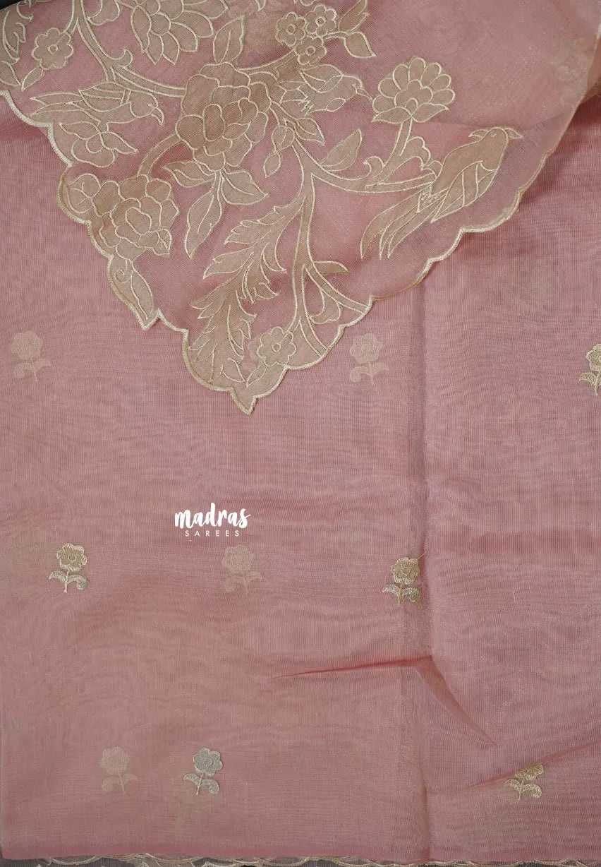 Pastel Pink - Organza Silk with Small Rose Embroidery - Best for Engagements / Haldi / Reception