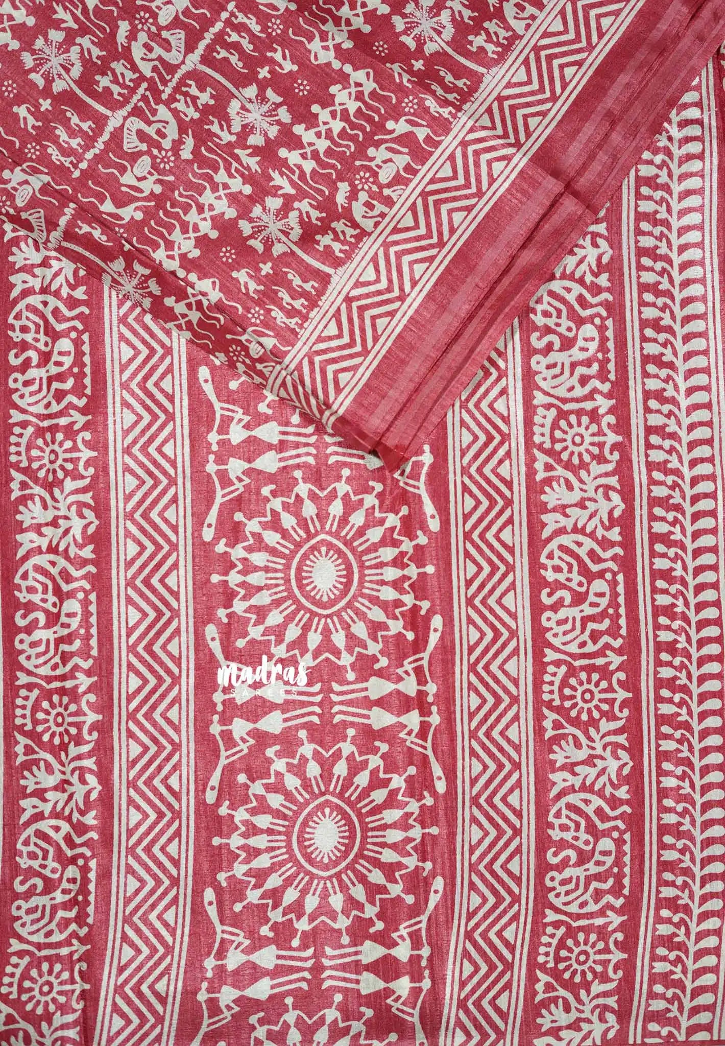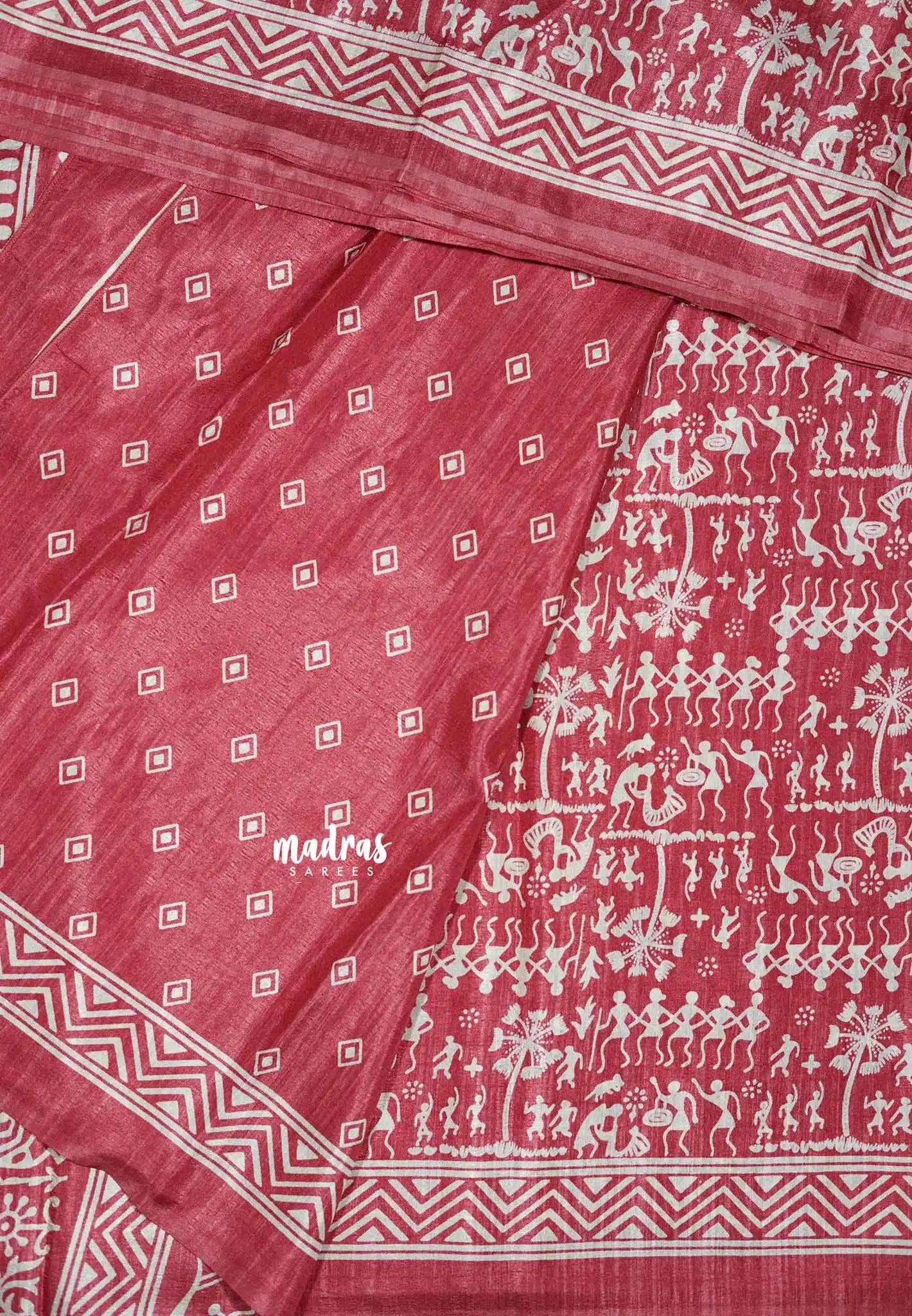 Pastel Peach Pink - Uniform sarees Malgudi printed silk warli prints