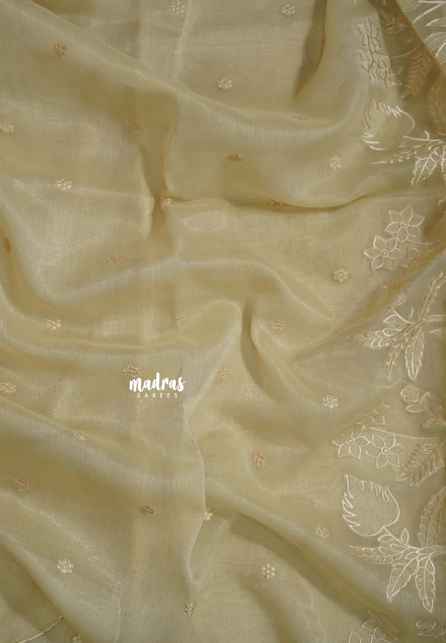 Pastel Sandal - Organza Silk with Small Floral Embroidery - Best for Engagements / Haldi / Reception