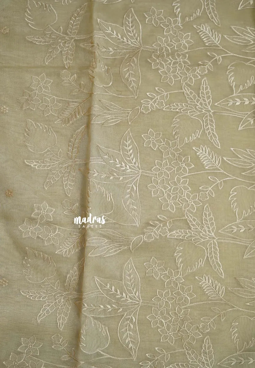 A graceful organza silk saree adorned with delicate floral embroidery all over. Lightweight and sheer, it drapes beautifully for a refined and charming look — perfect for both festive and elegant occasions.