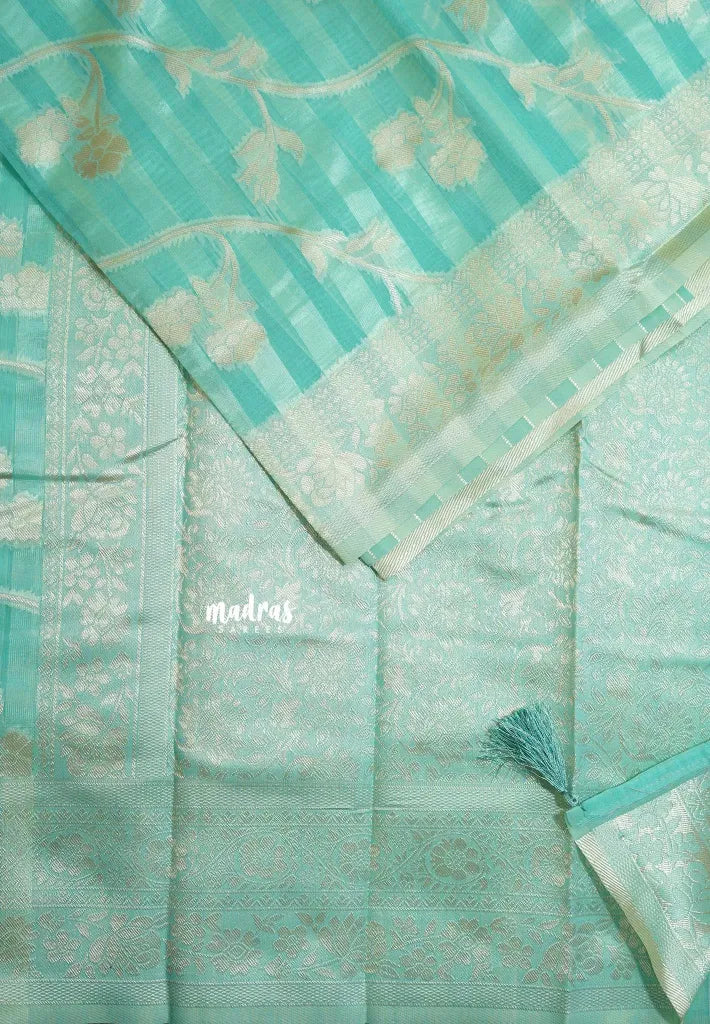 Pastel Teal Green - Durga - Banarasi Semi Silk with Line Zari Weaving Body with Border - 🌸 Best for Simple Occasion