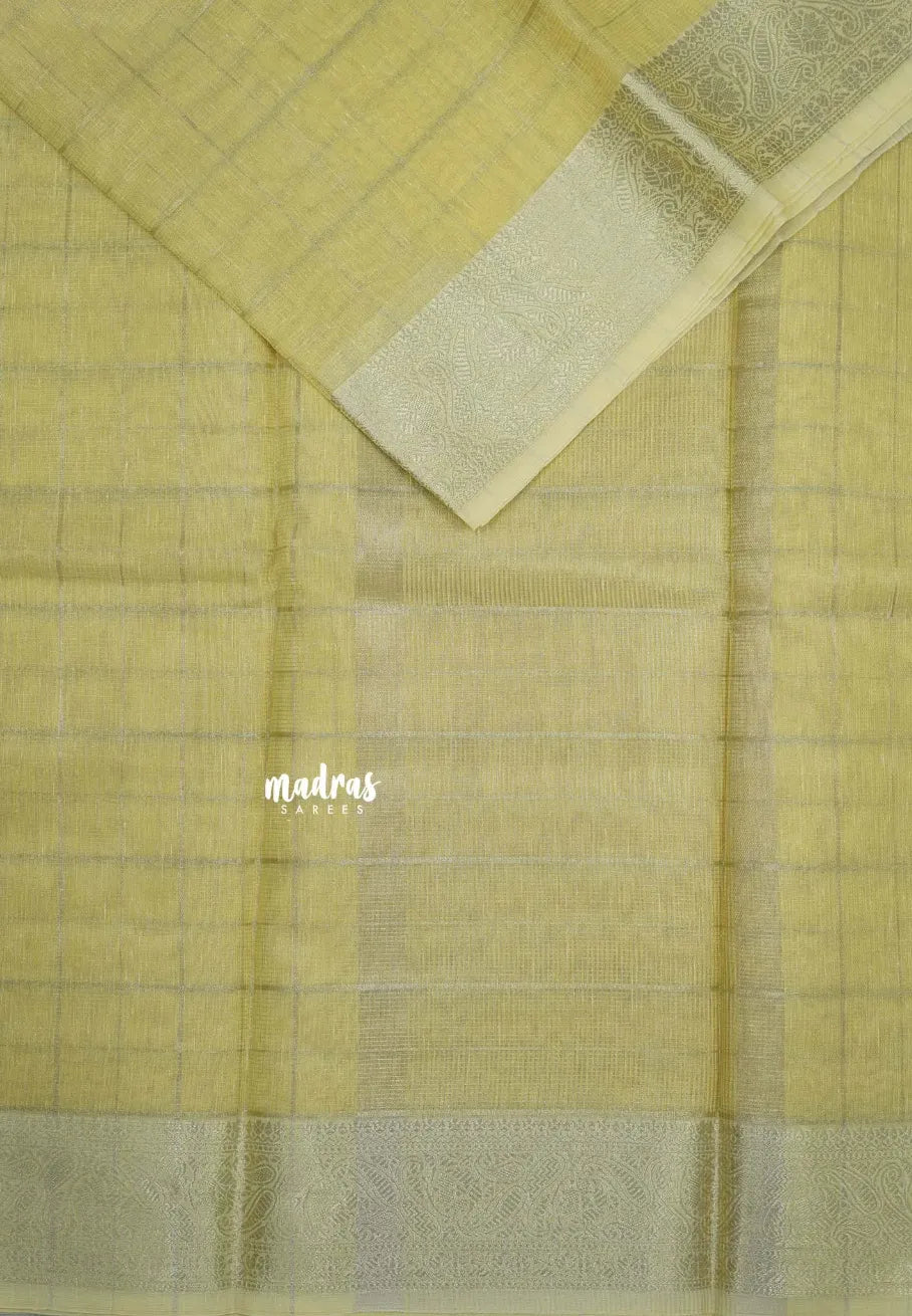 Banarasi Kota Tissue silk in pastel shades is a delicate fabric combining traditional weaving, lightweight Kota tissue, and jamdani weaving border. It’s ideal for light occasions, offering a soft, sophisticated look.