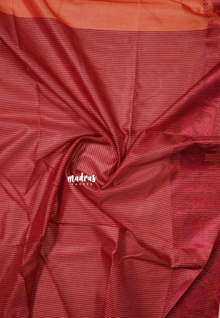 Peach - Manjari - Raw silk with Ambari weaving Border
