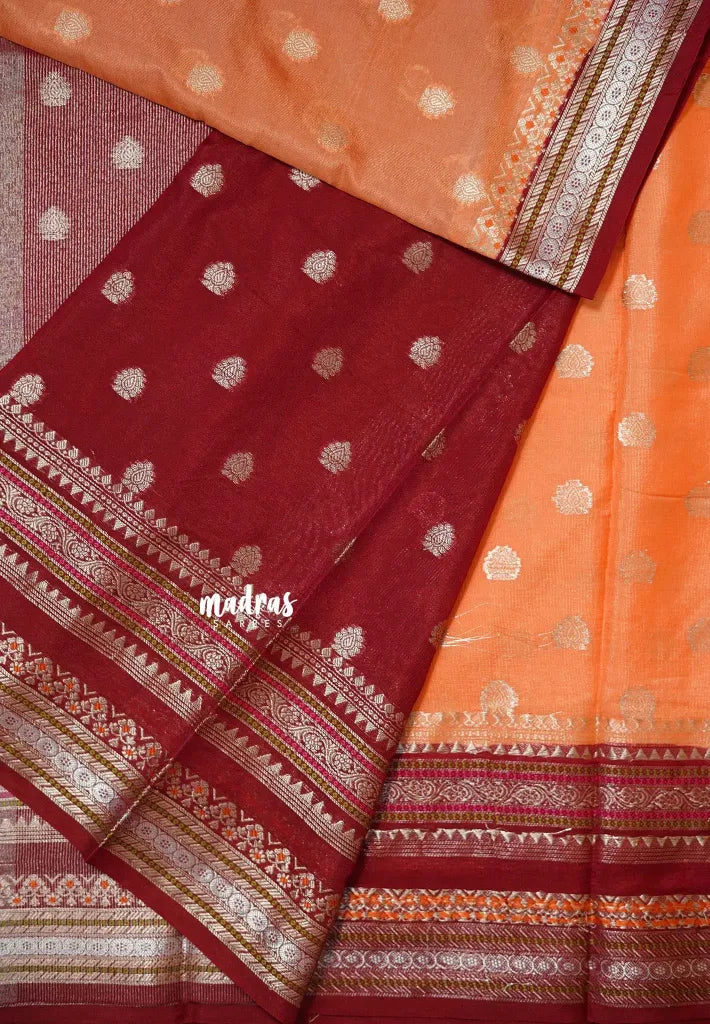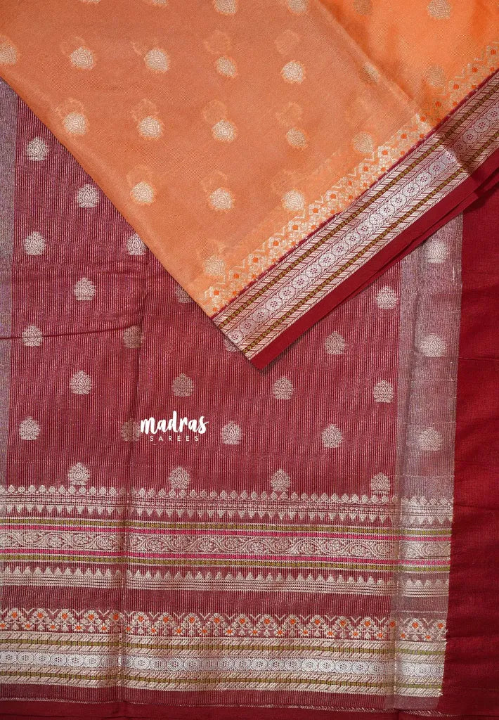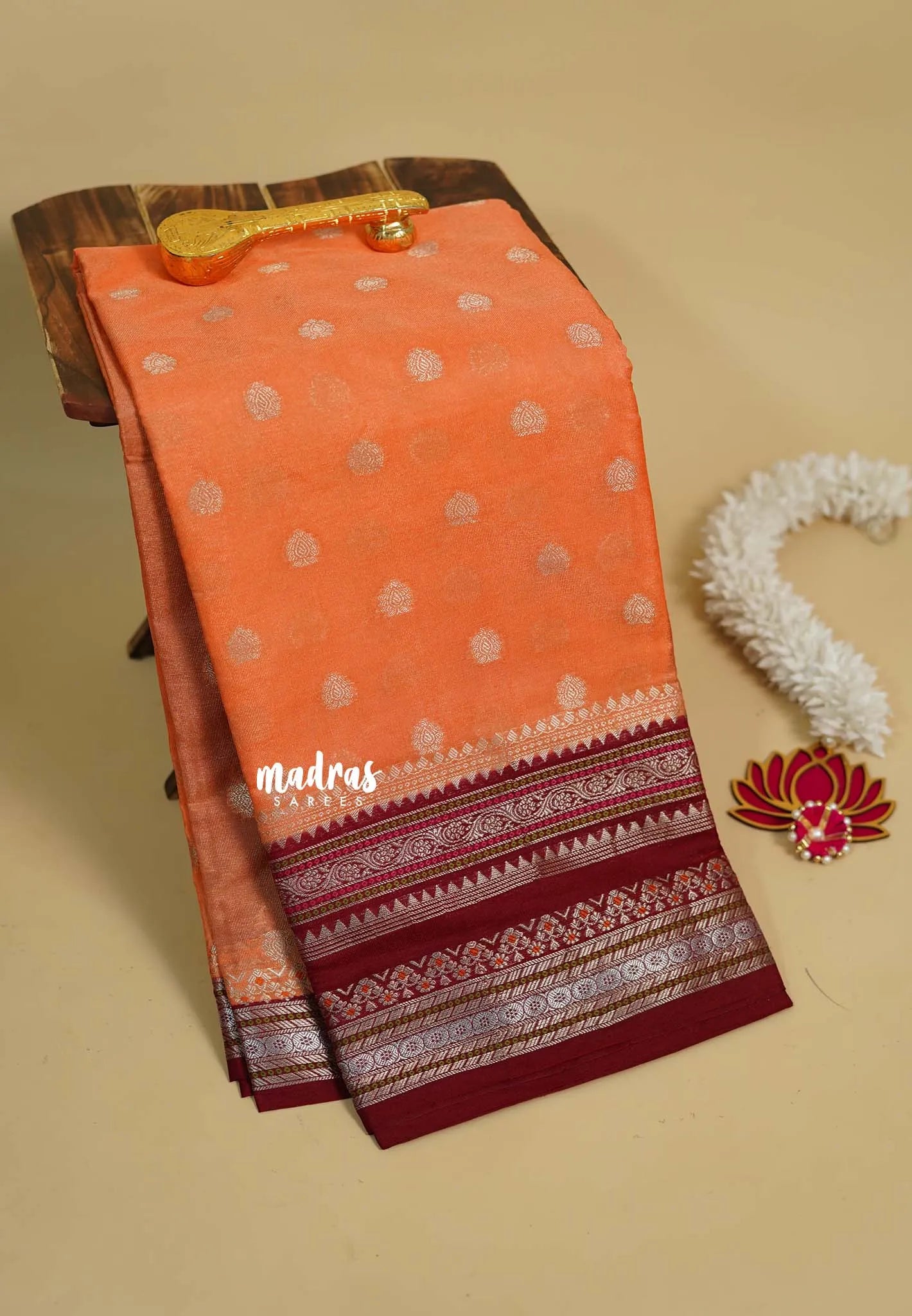 Peach Orange - Durga - Banarasi soft katan silk with zari border