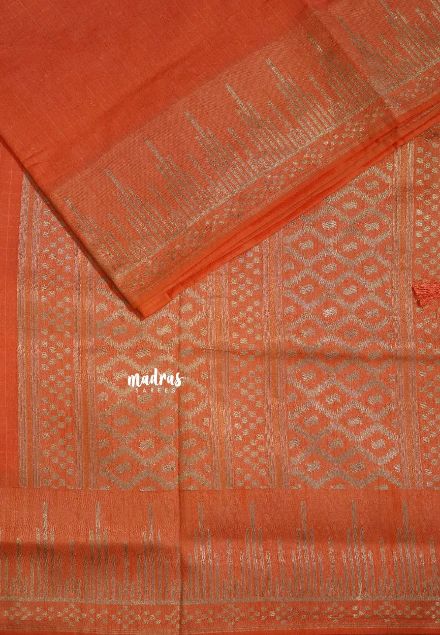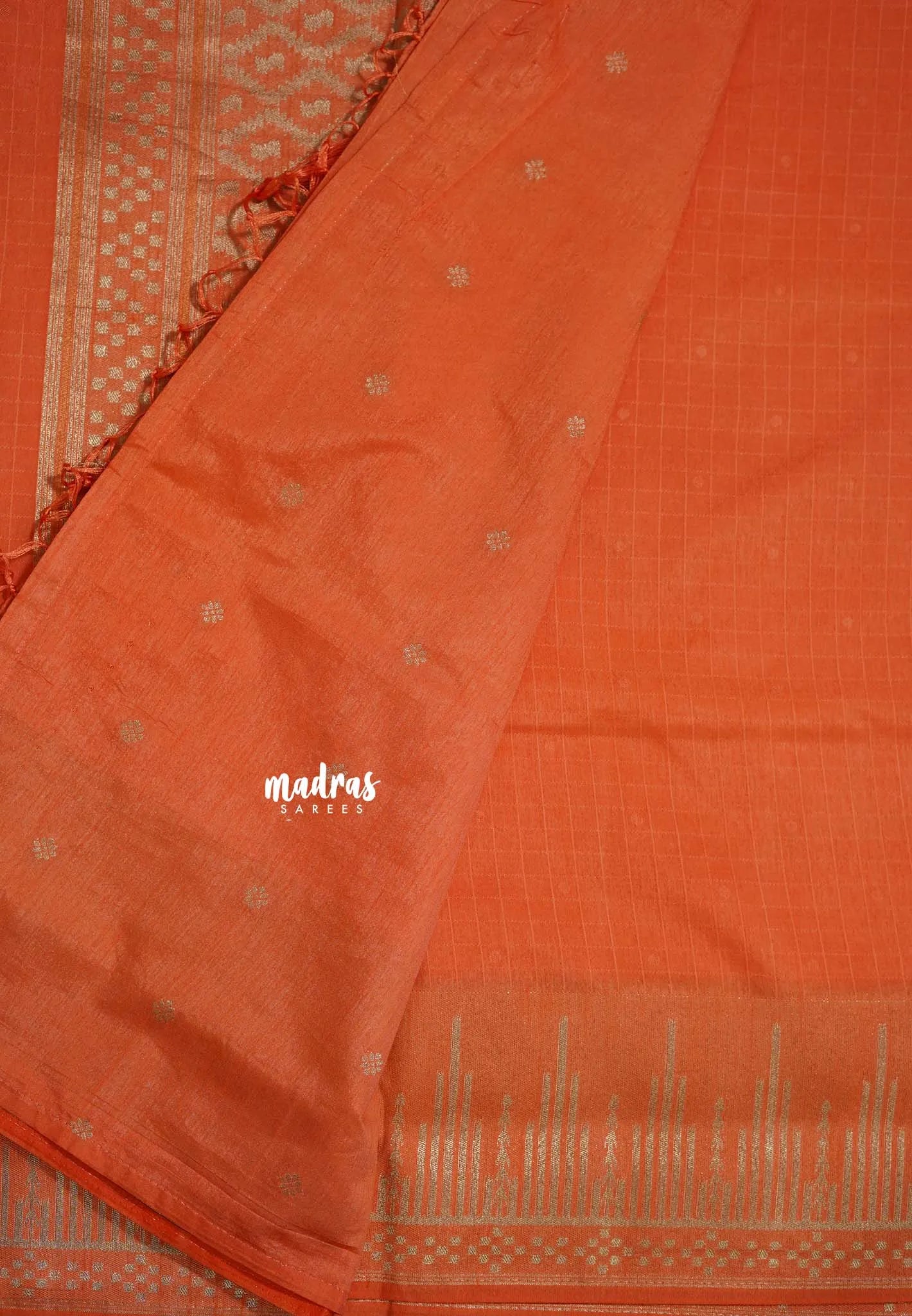 Peach Orange - Raaga - Raw Mango Tussar Silk with Stripe Temple Border and Piping - Best for Pooja Days