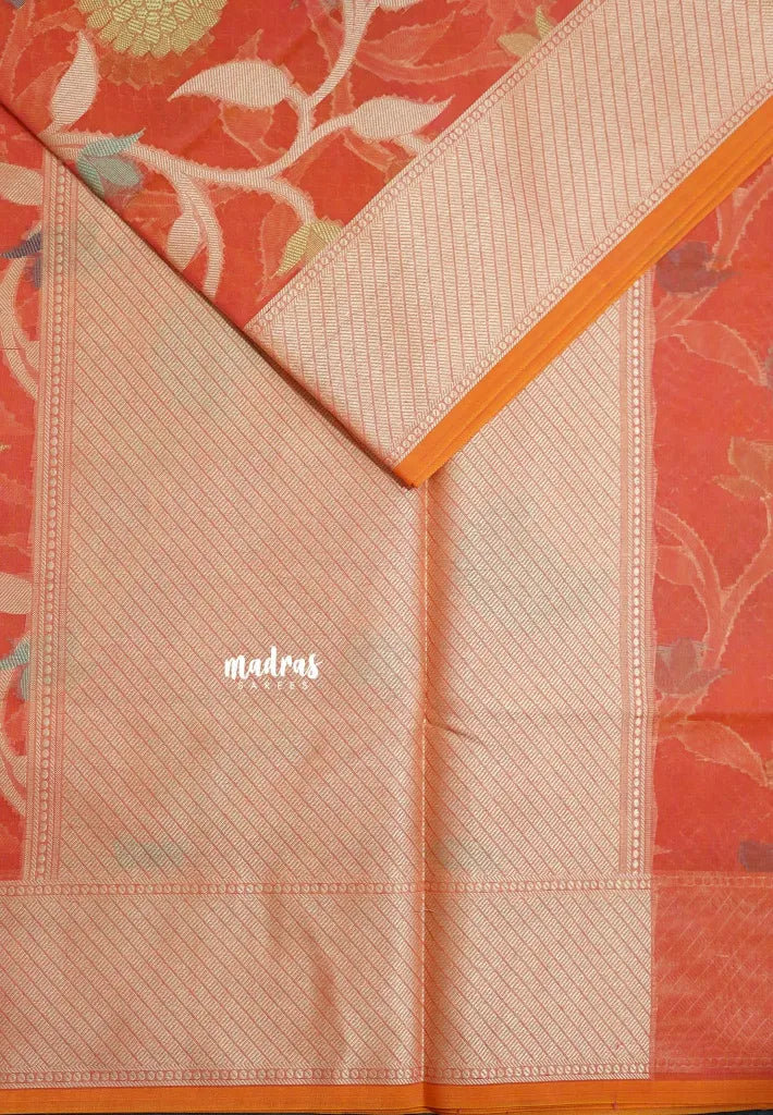 Peach Orange - Soft Premium Banarasi Jamdani Cotton Saree - Best for Elegant Style