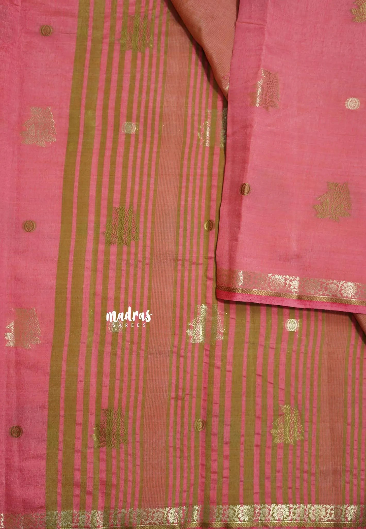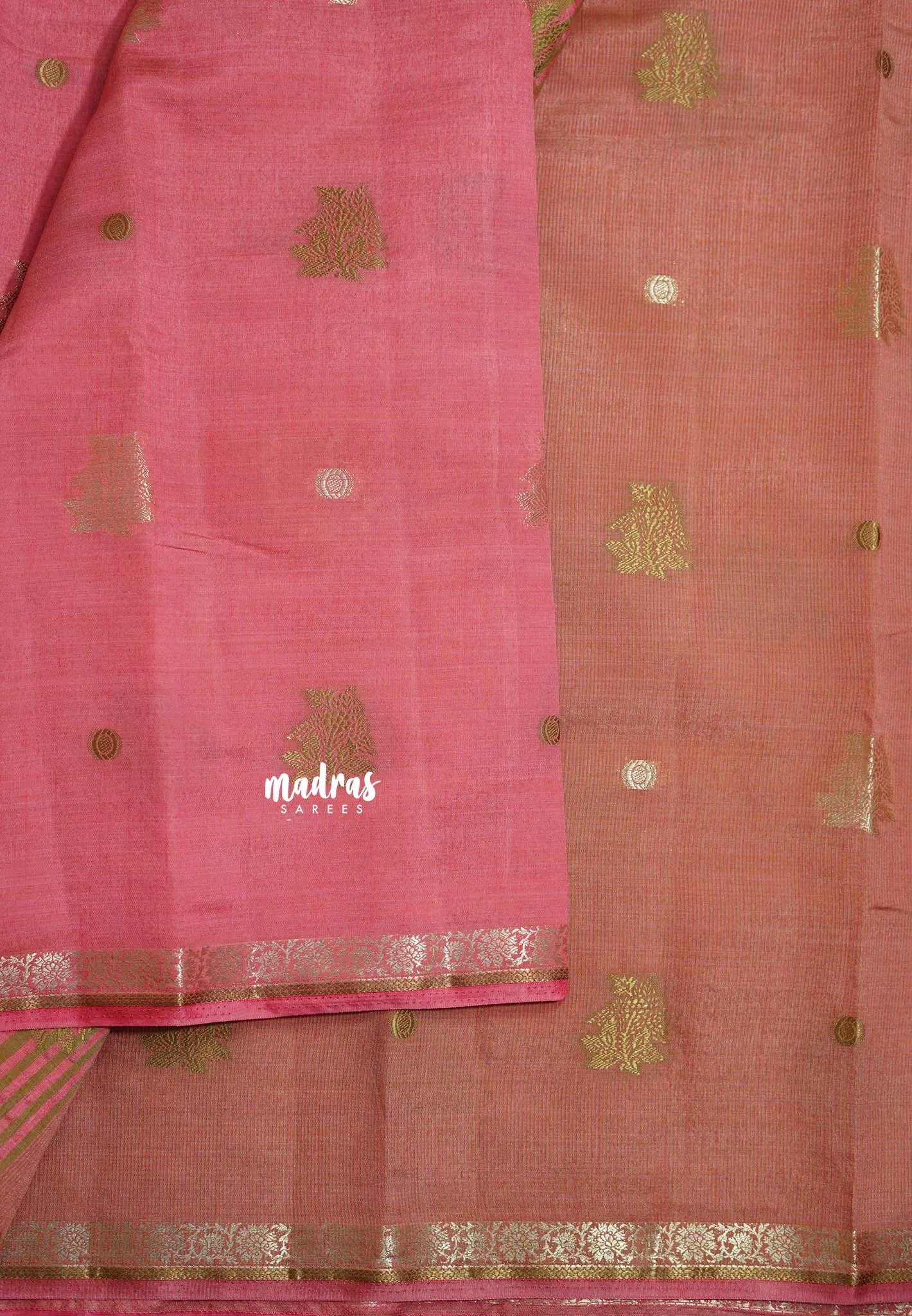 Pink - Raaga - Semi Tussar and Tiny Border with Floral and Buttas - Best for Gifting