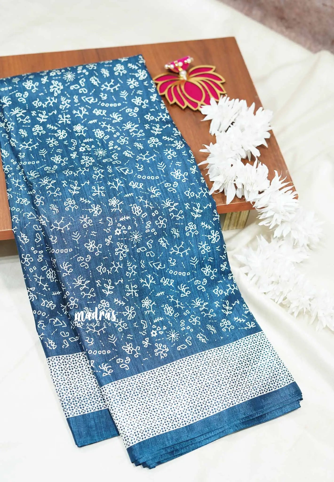 Peacock blue - Uniform sarees Malgudi printed silk small prints