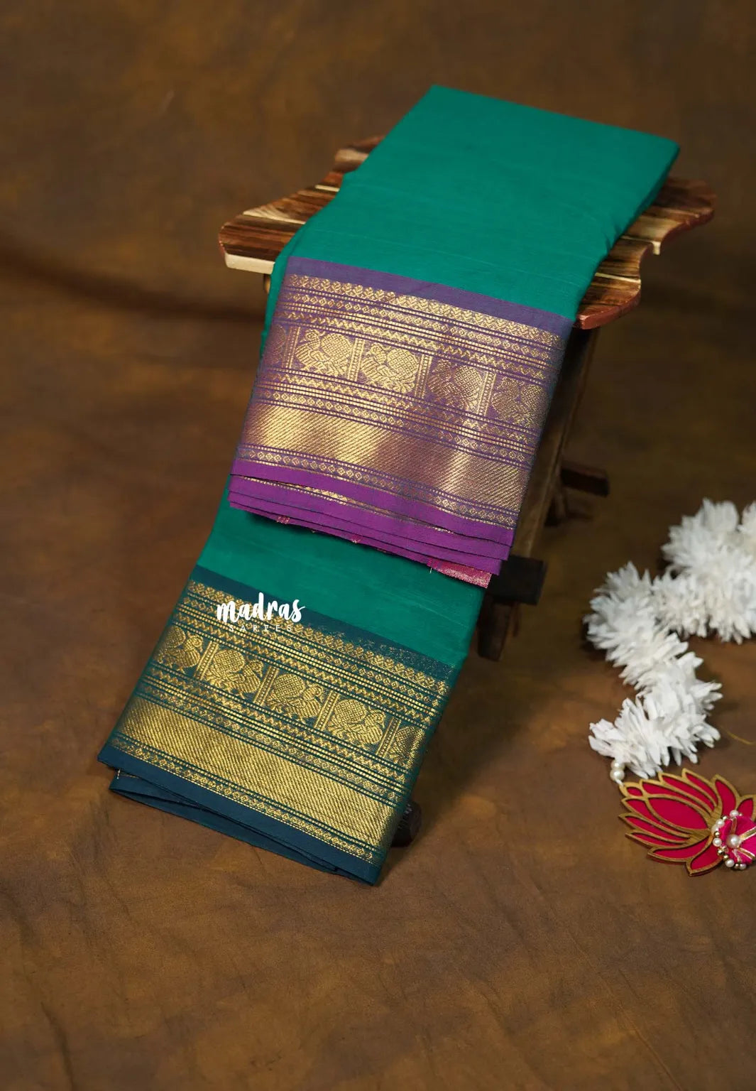 Peacock Green - Karthigai silk cotton annam and bavanji Ganga jamuna border with Stripes - Best for Gifting