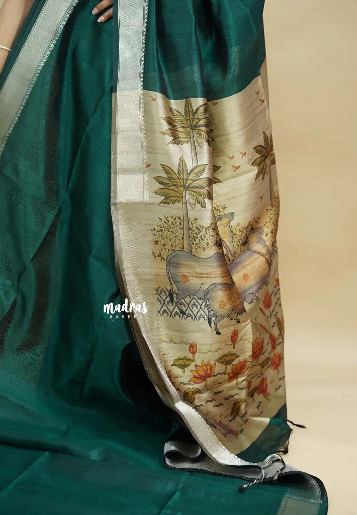 This elegant Roopa tussar saree exudes a graceful charm, ideal for festive and formal occasions. The luxurious fabric drapes beautifully, offering both comfort and sophistication. Its refined finish and intricate craftsmanship highlight timeless tradition with a modern touch.This saree features a high-quality one-side print, giving it a refined, premium finish that stands out effortlessly