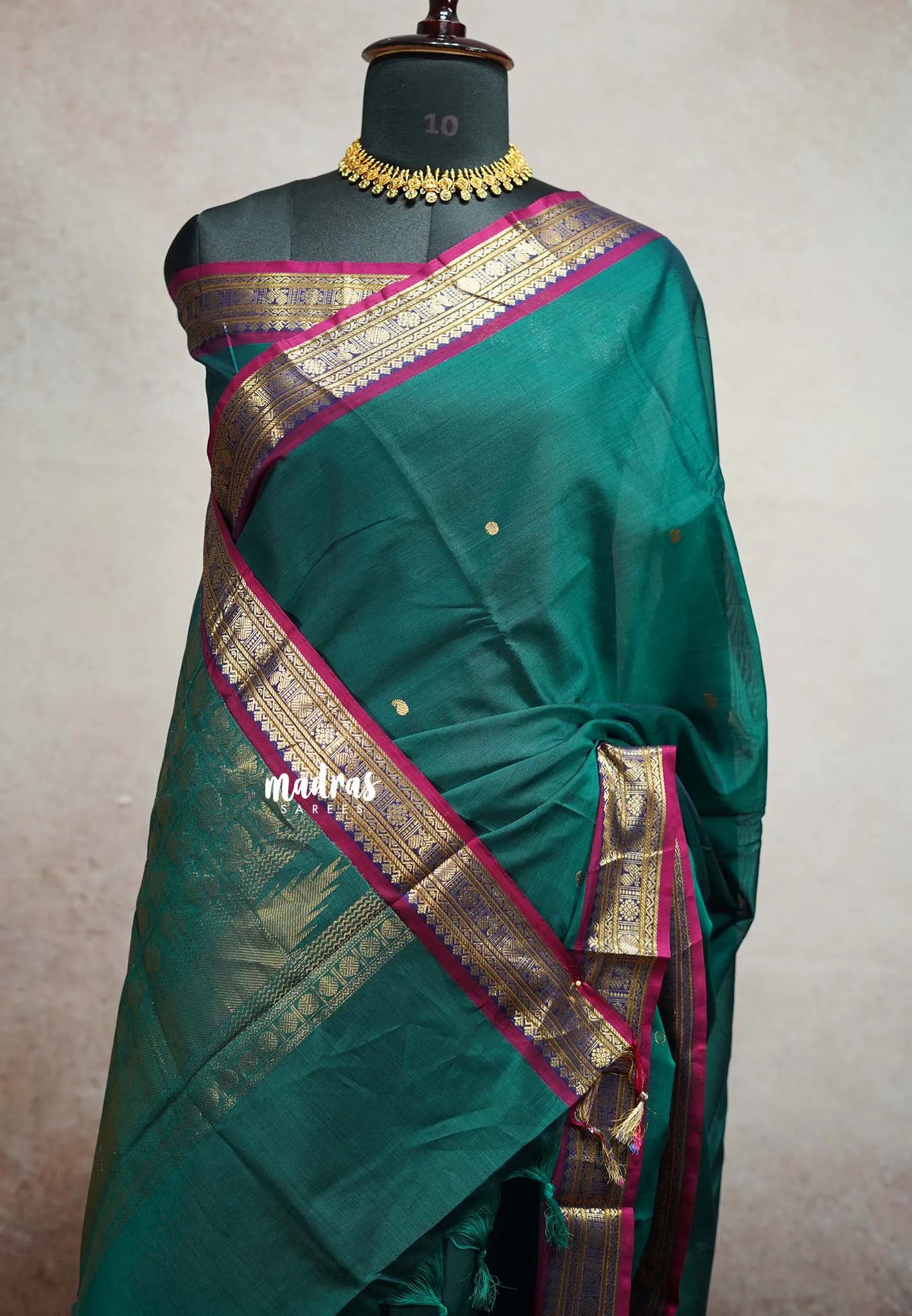 The blend of 120 count mercerized silk cotton combines the elegance of silk with the practicality of cotton, making it ideal for those seeking a luxurious experience without sacrificing comfort. The sheen from mercerization adds an attractive finish, while the breathable nature of cotton ensures it's suitable for various climates. The saree will be 100% equivalent to original silk in look and feel.
