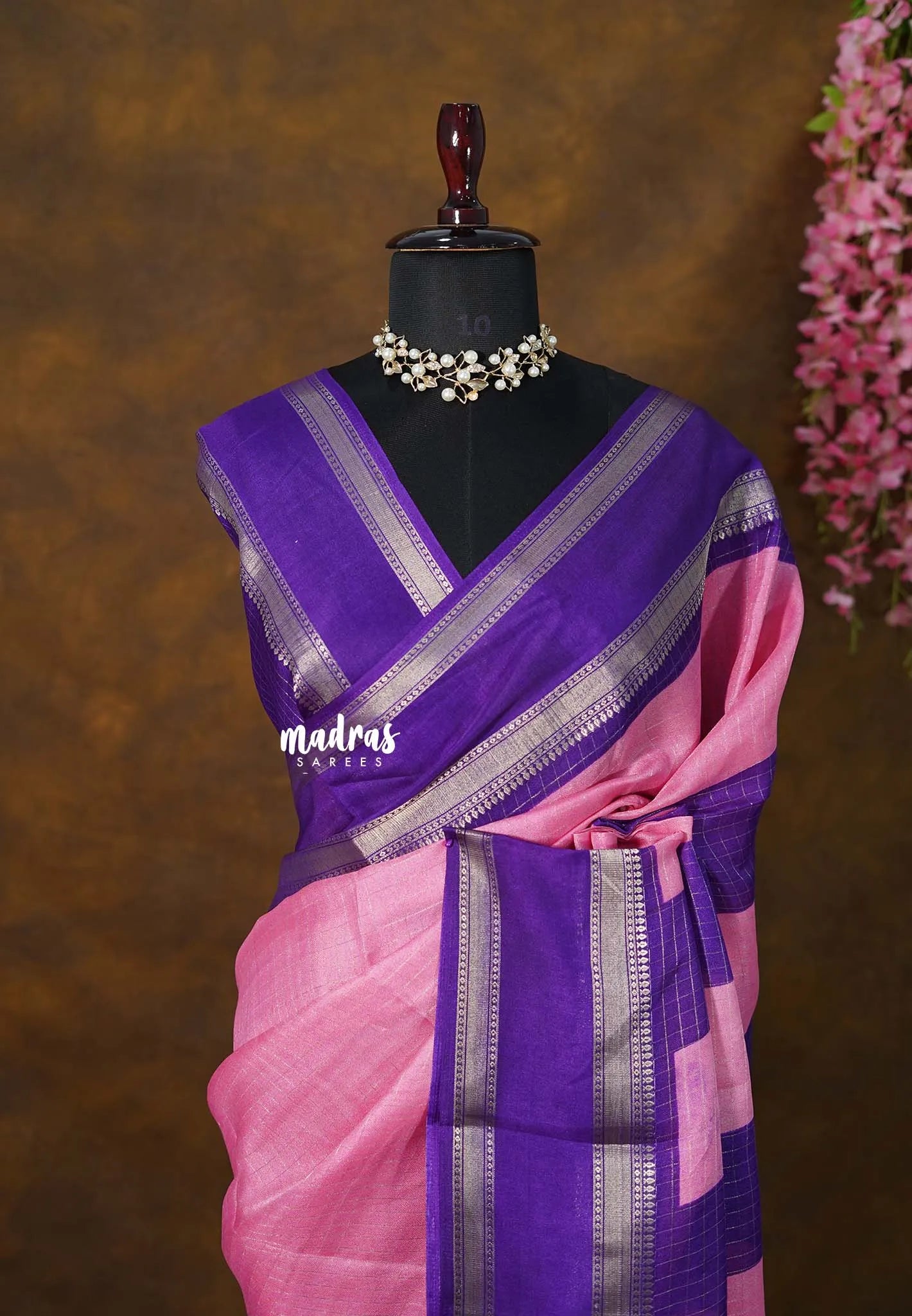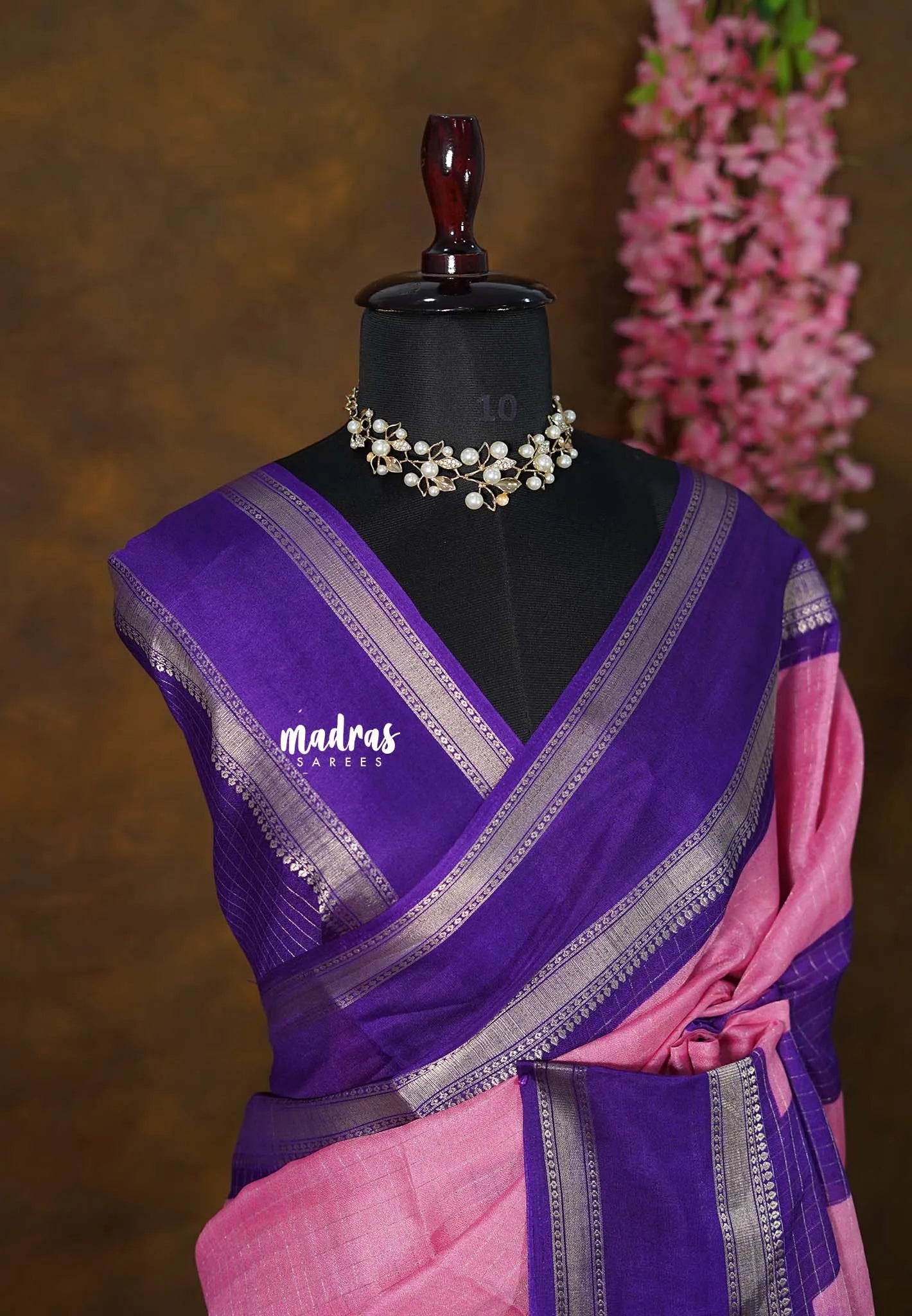 This is a Premium Vasundra silk saree designed finished with a traditional rettapet border. The fabric has a soft sheen, giving it a graceful and rich look, perfect for festive and special occasions.