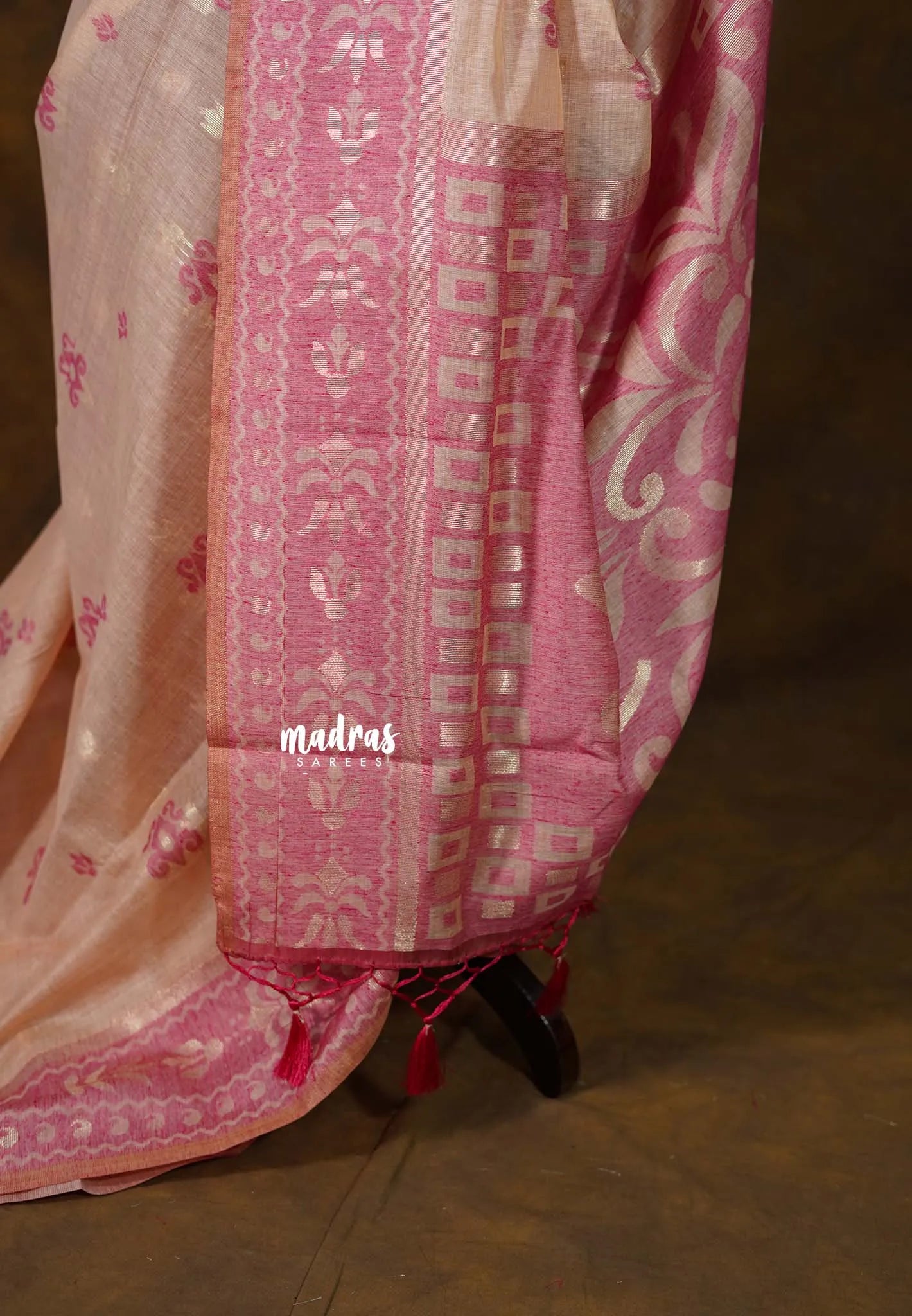 Powder Peach - Soft Muslin Silk with Heavy Weaving Border - Perfect for Office Wear