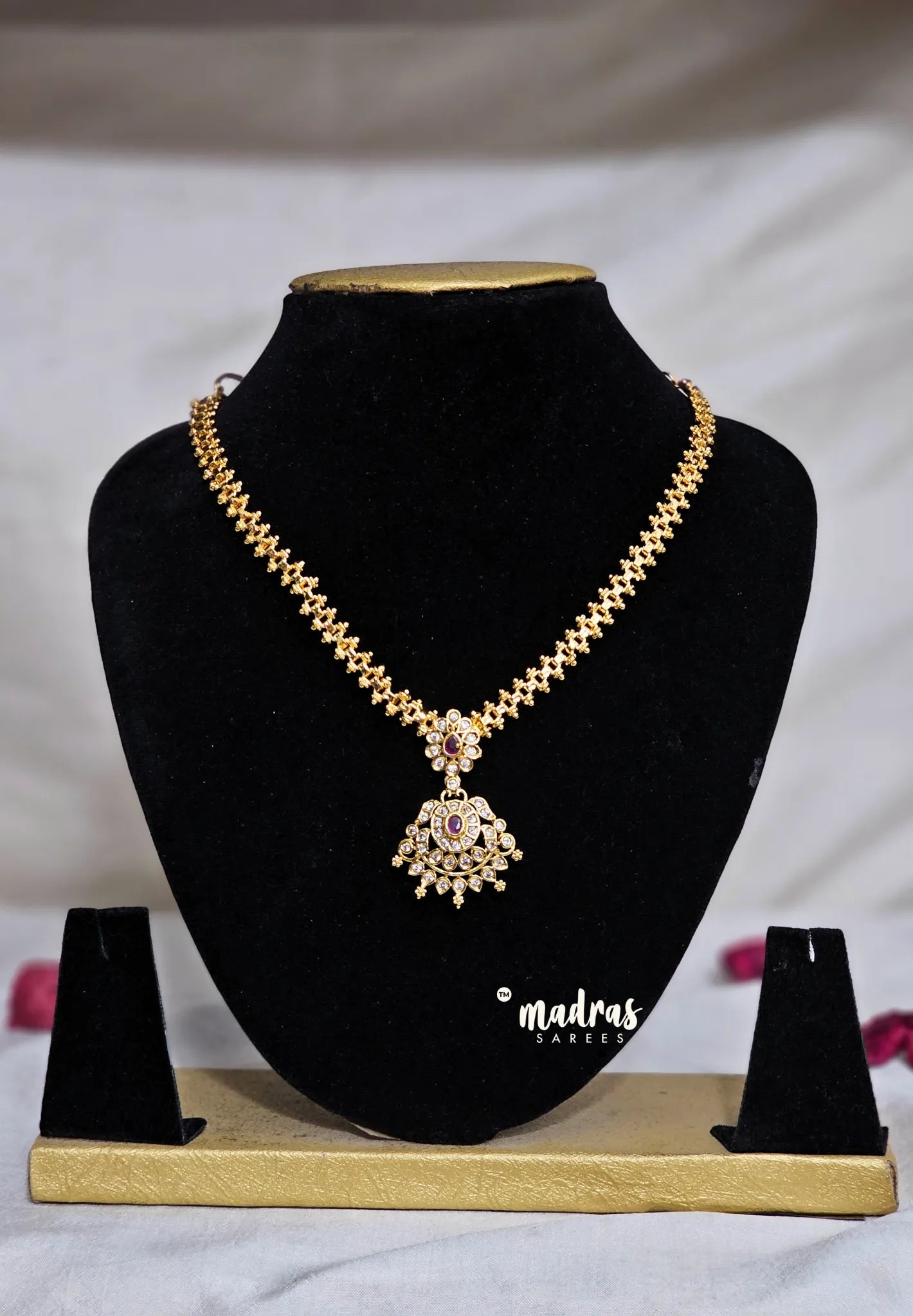 Premium 1 Gram Gold polish AD Stone Trendy Attigai Necklace