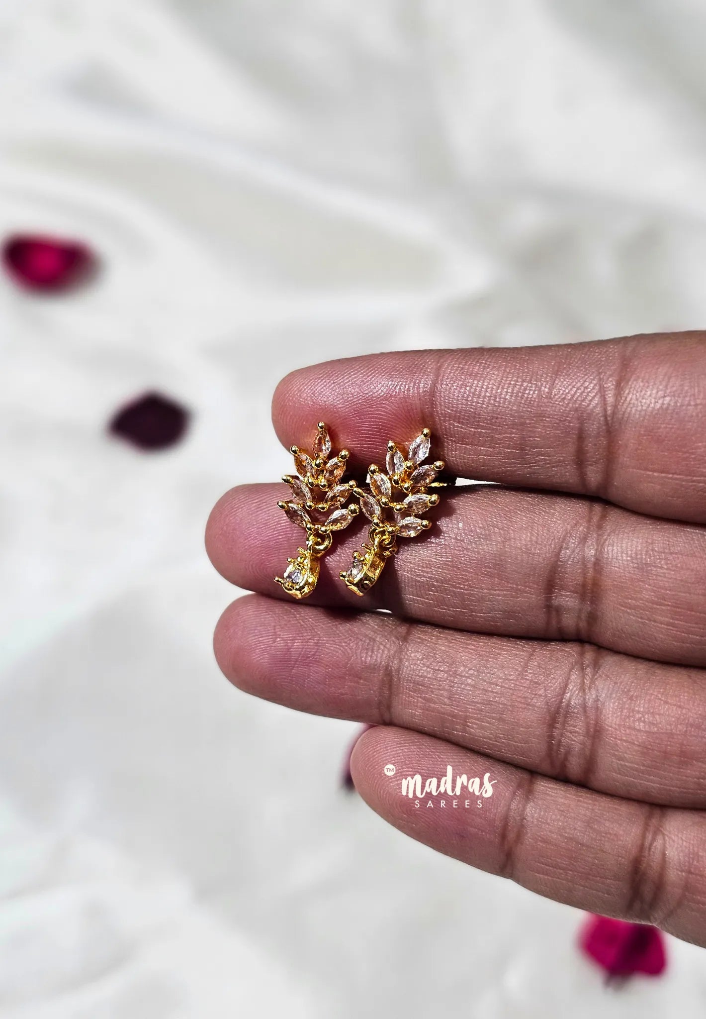 Premium 1 Gram Gold polish AD Stone Trendy White Leaf Design Stud