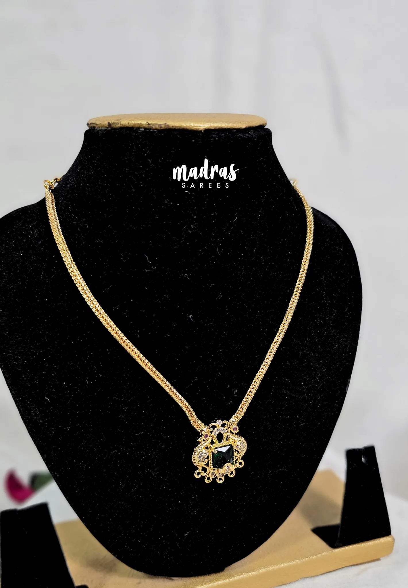 Premium 1 Gram Gold polish AD Stone Trendy New Design Short Necklace with Peacock with Emerald Green Stone