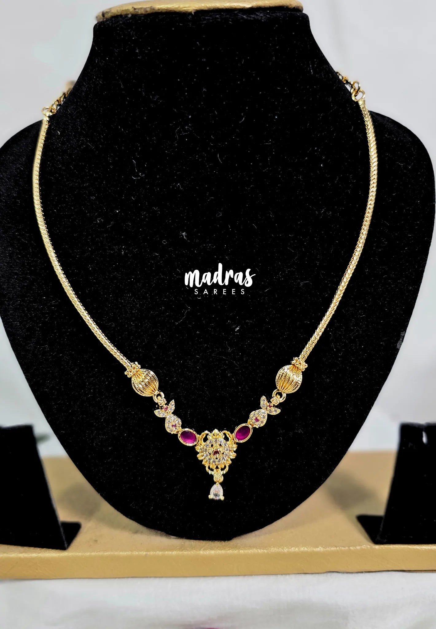 Premium 1 Gram Gold polish AD Stone Trendy New Style Pendant Necklace Design 1