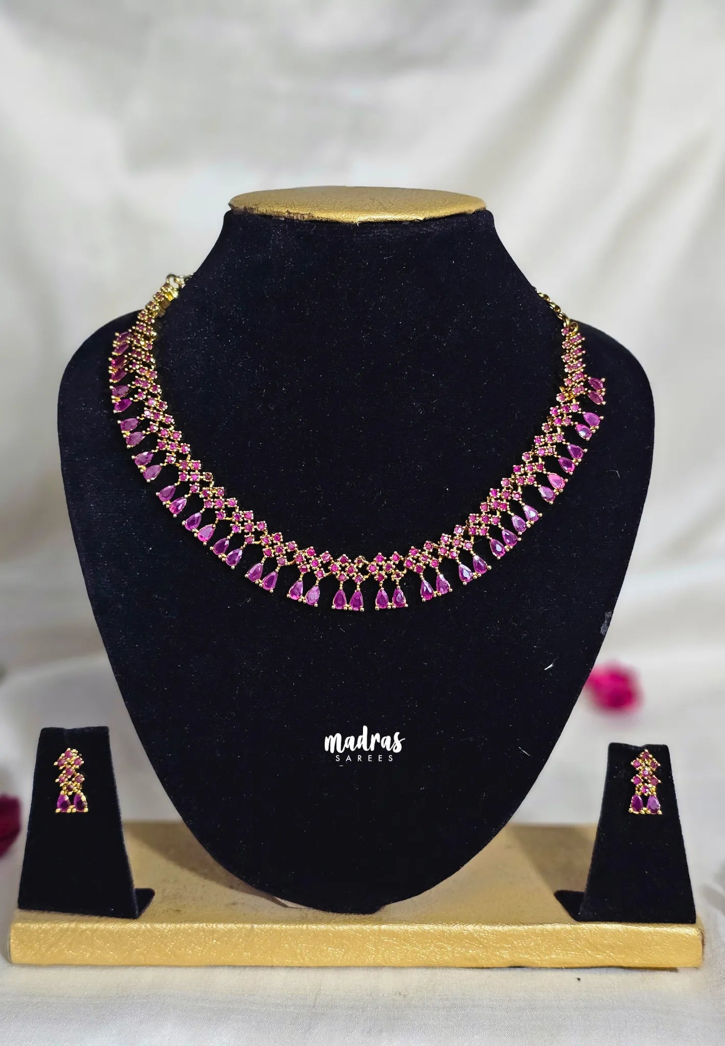 Premium 1 Gram Gold polish AD Stone Trendy Ruby Choker Necklace with Earrings