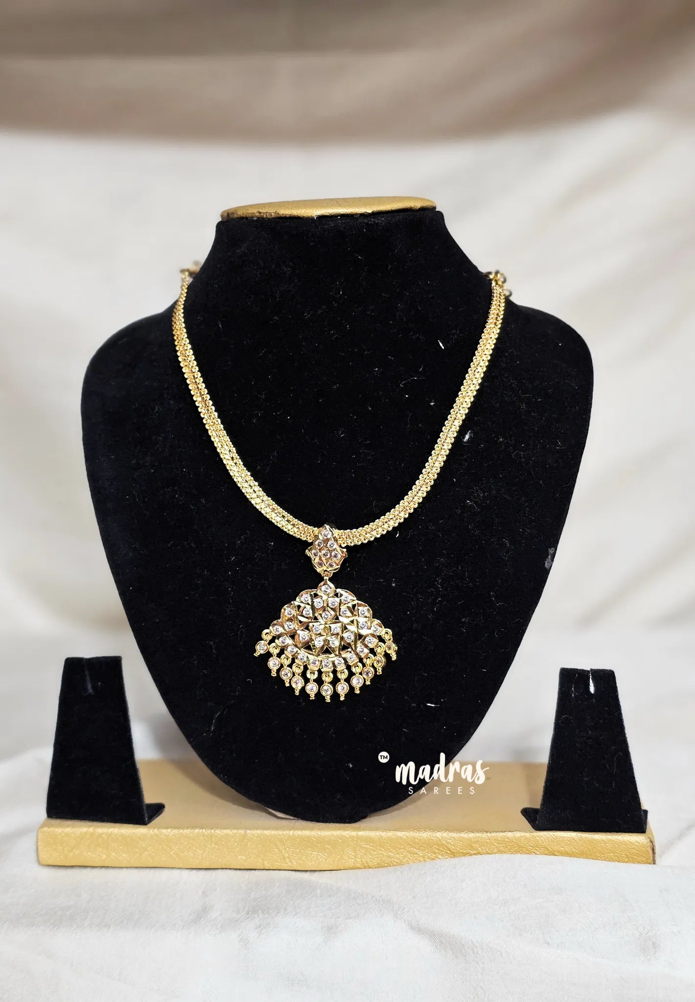Add a touch of refined elegance to your look with this beautifully crafted trendy AD Stone Gold Polish necklace —perfect for festive occasions, weddings, and special moments.