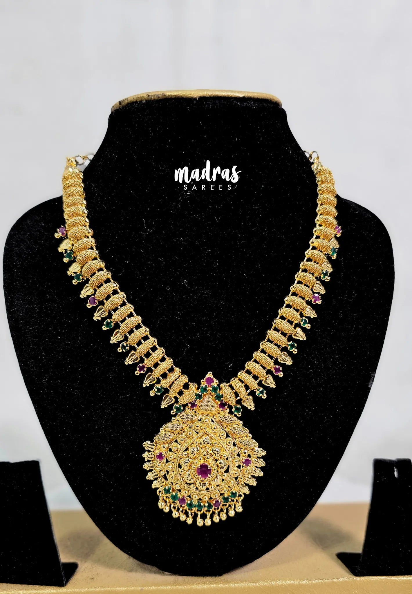 Premium 1 Gram Gold polish AD Stone Trendy Unique Design Green and Pink Stone Necklace