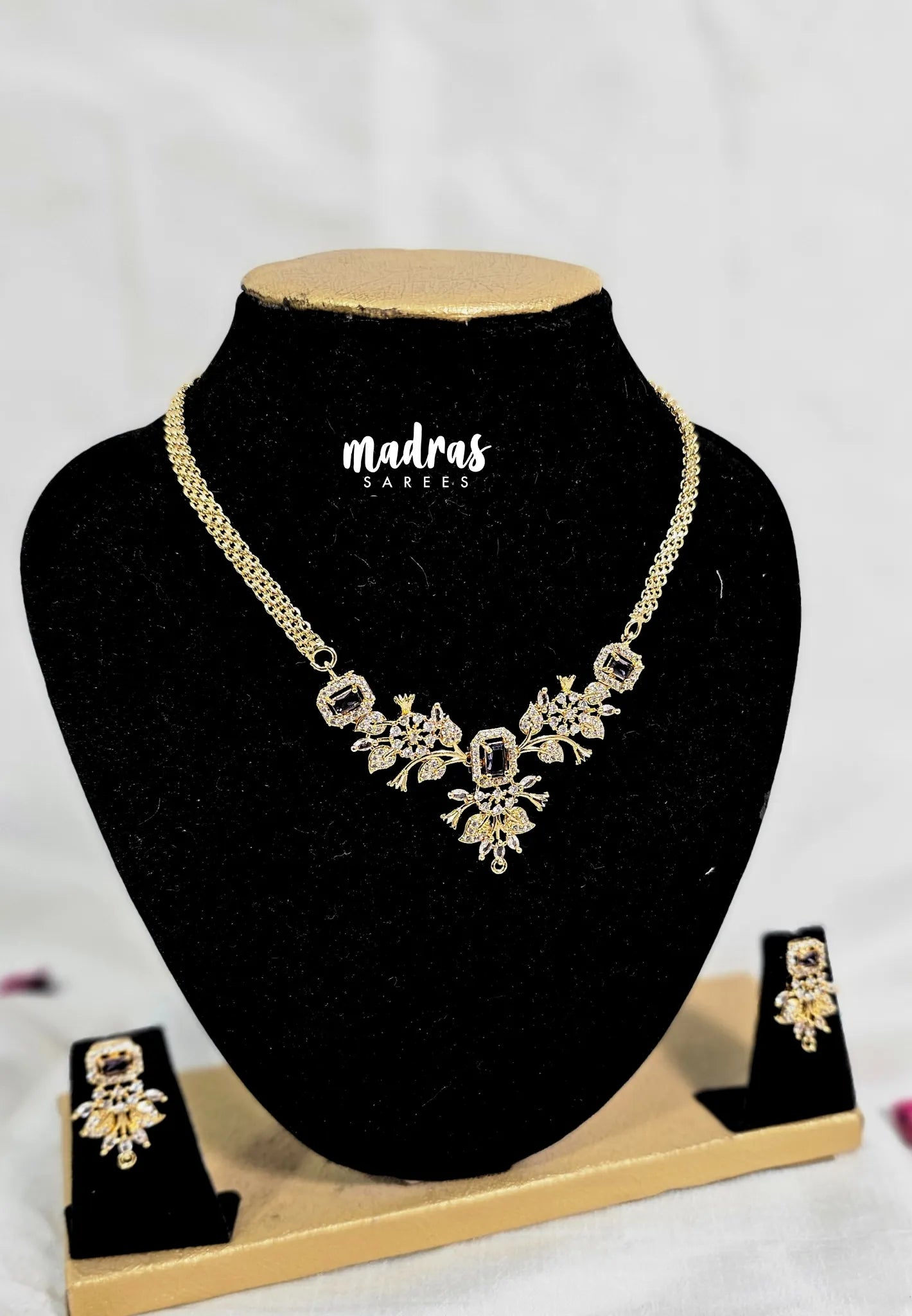 Premium 1 Gram Gold polish AD Stone Trendy Unique Design Necklace with Earrings