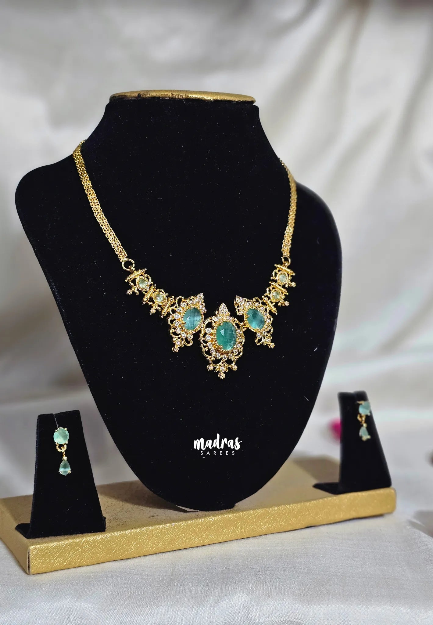 Add a touch of refined elegance to your look with this beautifully crafted trendy AD Stone Gold Polish necklace —perfect for festive occasions, weddings, and special moments.