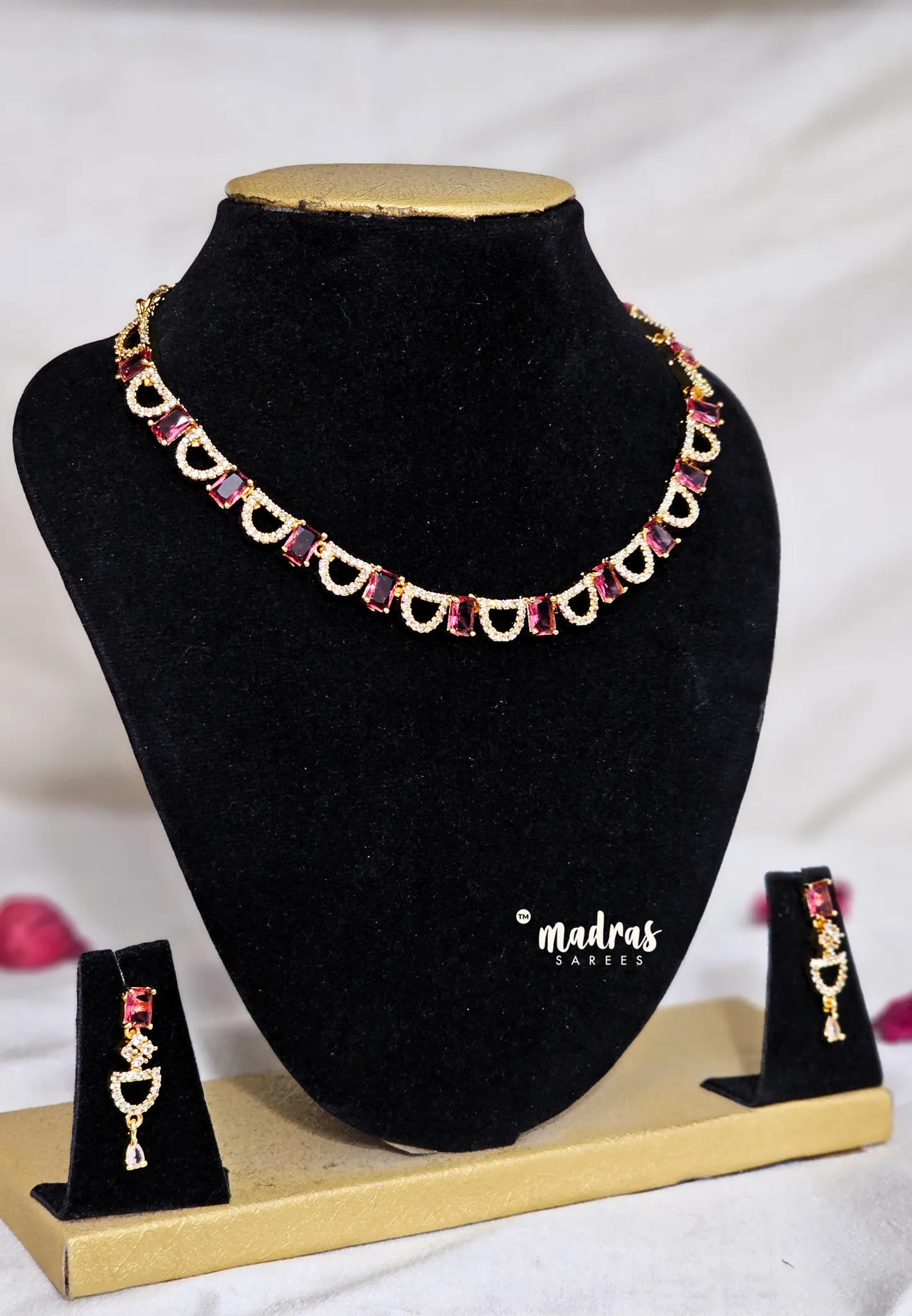 Premium 1 Gram Gold polish AD Stone Trendy Unique ruby Necklace with Earrings