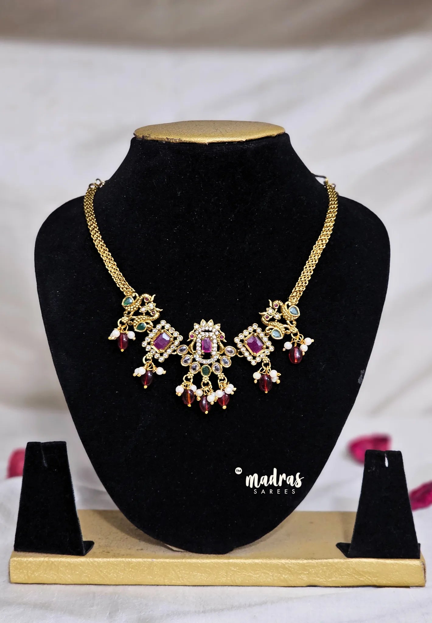 Premium 1 Gram Gold polish AD Stone ruby Trendy Unique Peacock choker Necklace