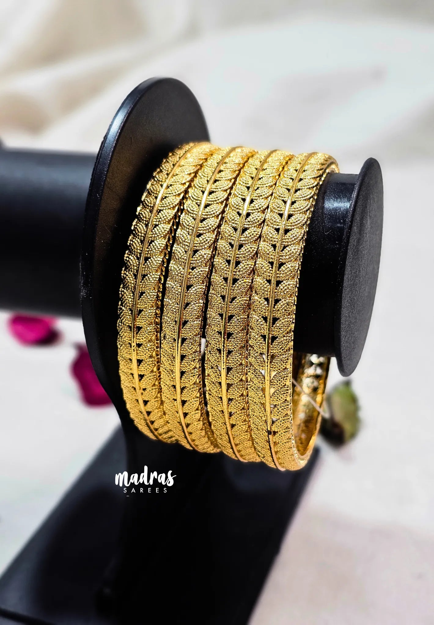 This elegant gold polish bangle set is crafted to bring a rich, traditional charm to your look. Designed with a smooth finish and intricate detailing, it beautifully complements festive outfits and ethnic wear.