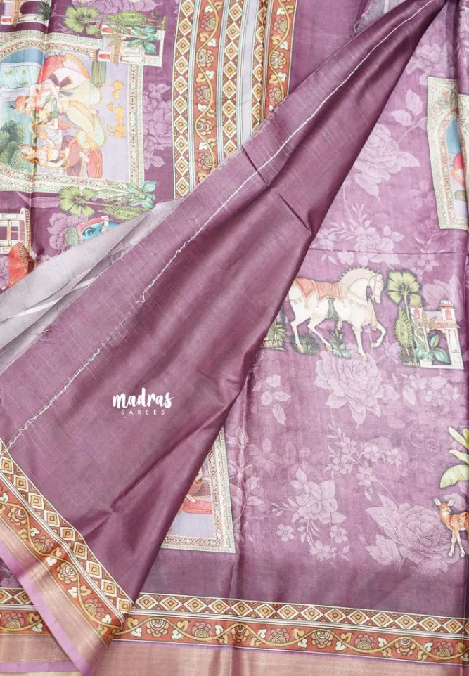 Premium printed silk mugal painting prints Elephants - Onion purple