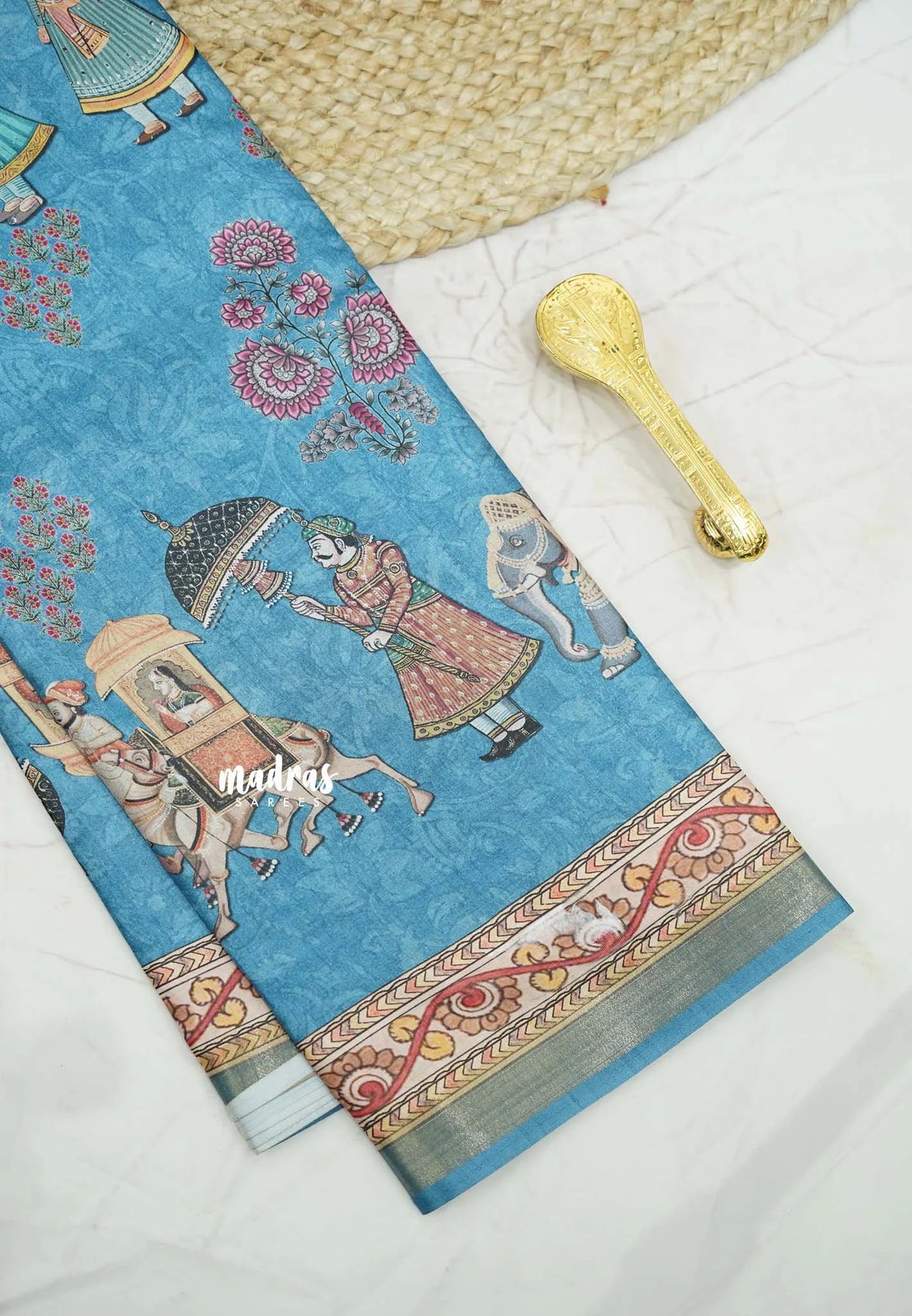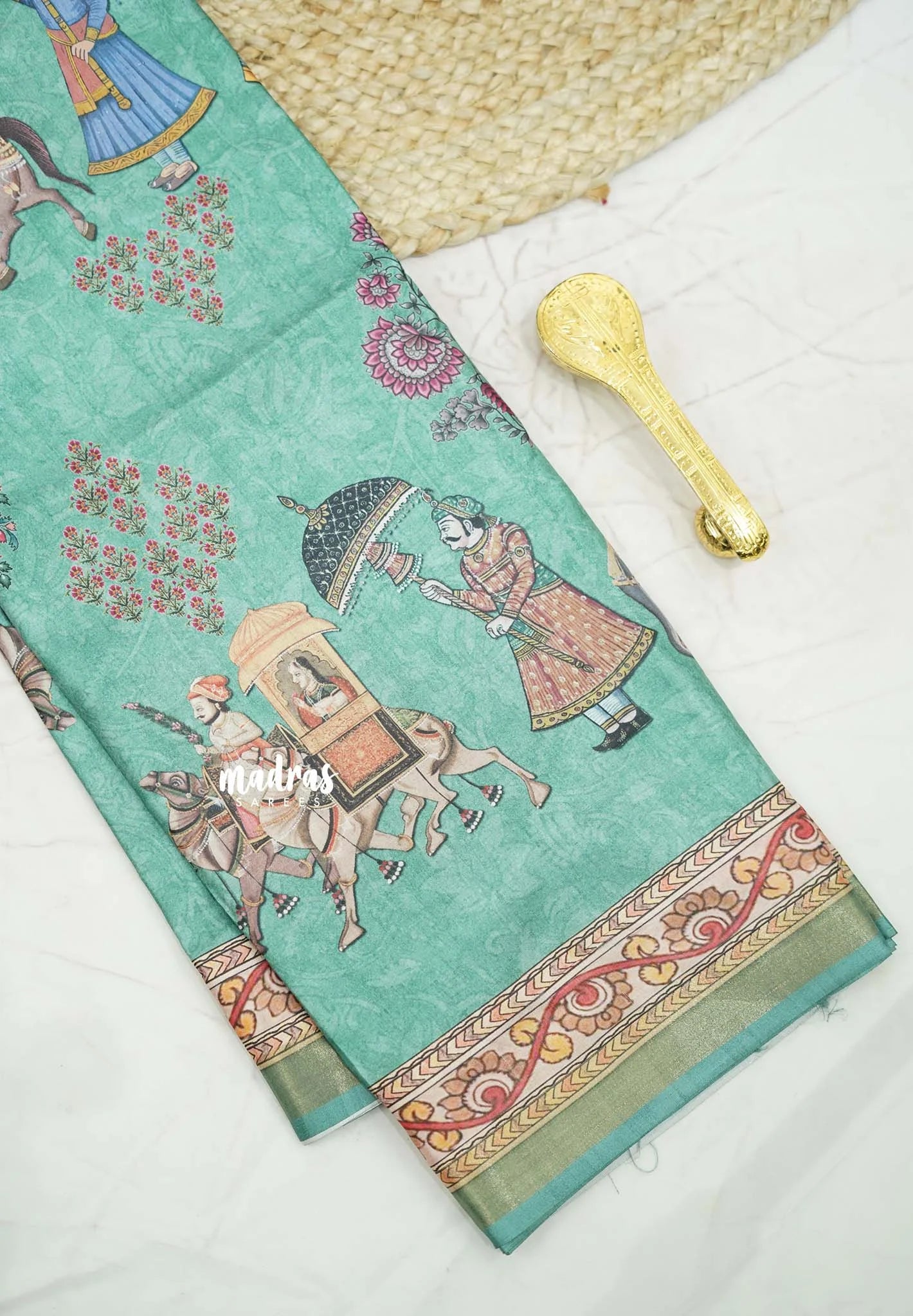 A **premium printed silk saree** is made from high-quality silk with intricate, vibrant prints. It features a smooth, lustrous texture and drapes elegantly. Printed using techniques like screen or digital printing, these sarees are perfect for special occasions, offering both luxury and comfort. Ideal for festivals and parties, they are often paired with matching blouses and accessories for a sophisticated look.