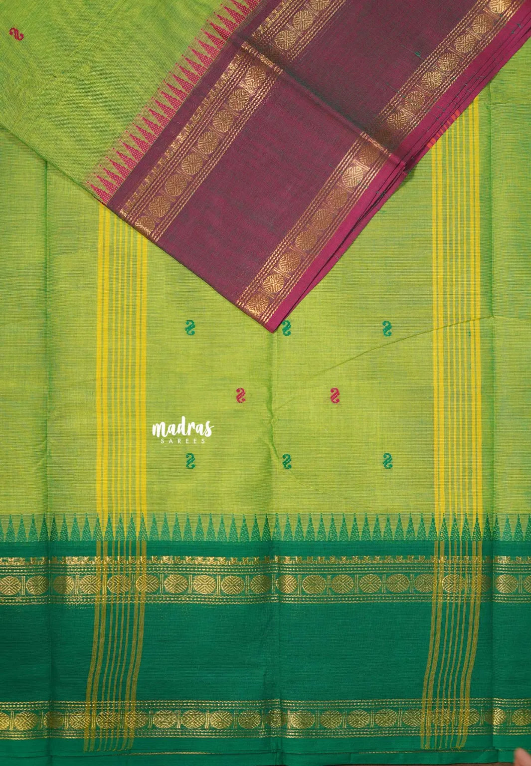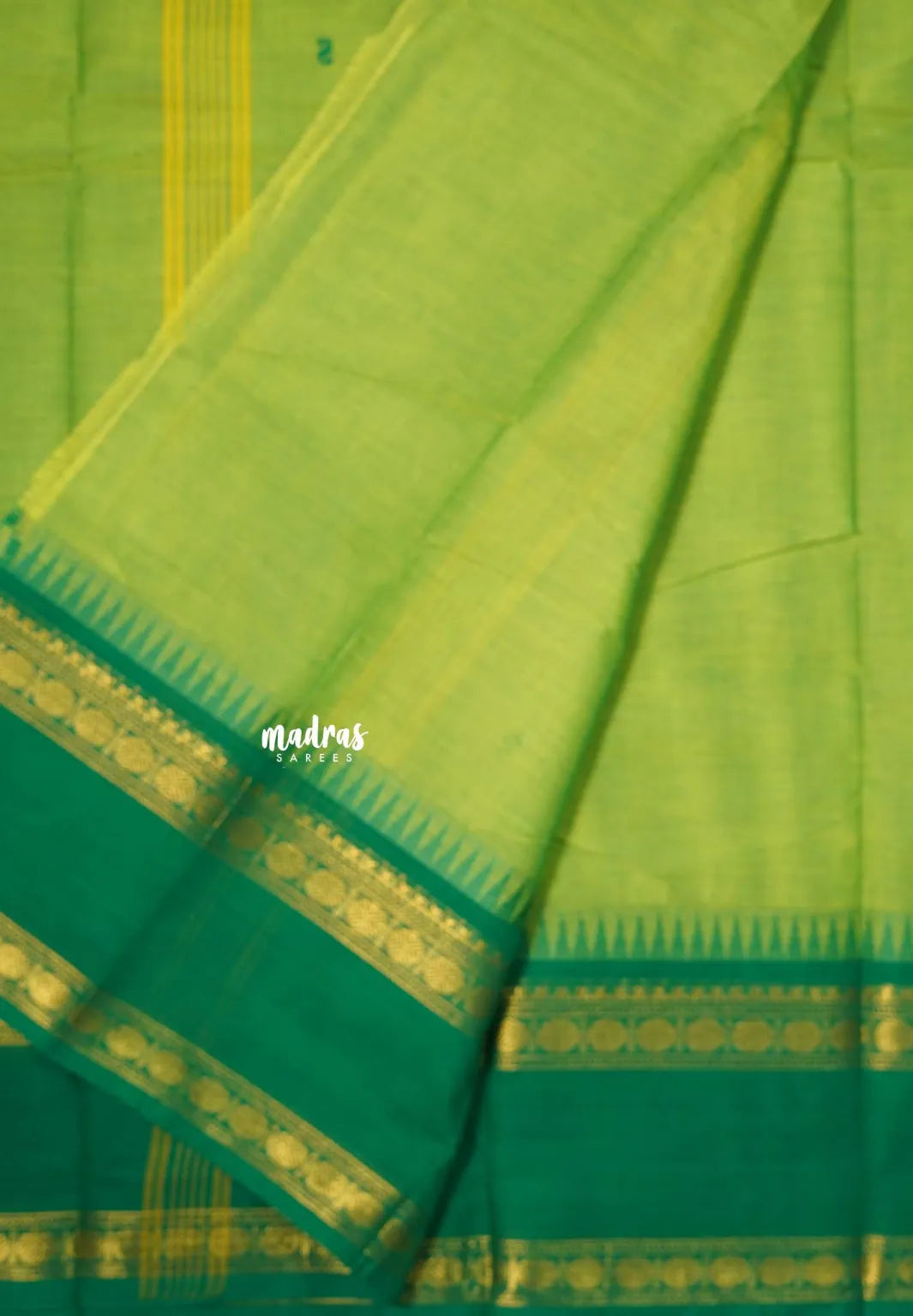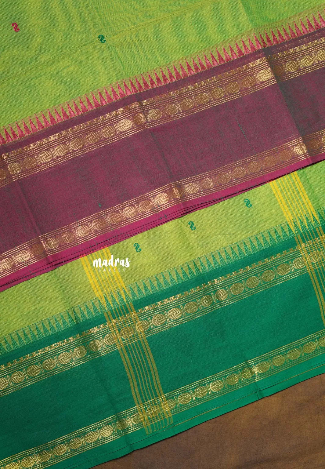 Pretty Parrot Green - Karthigai silk cotton rettapet Ganga jamuna border with buttas - Best for Gifting