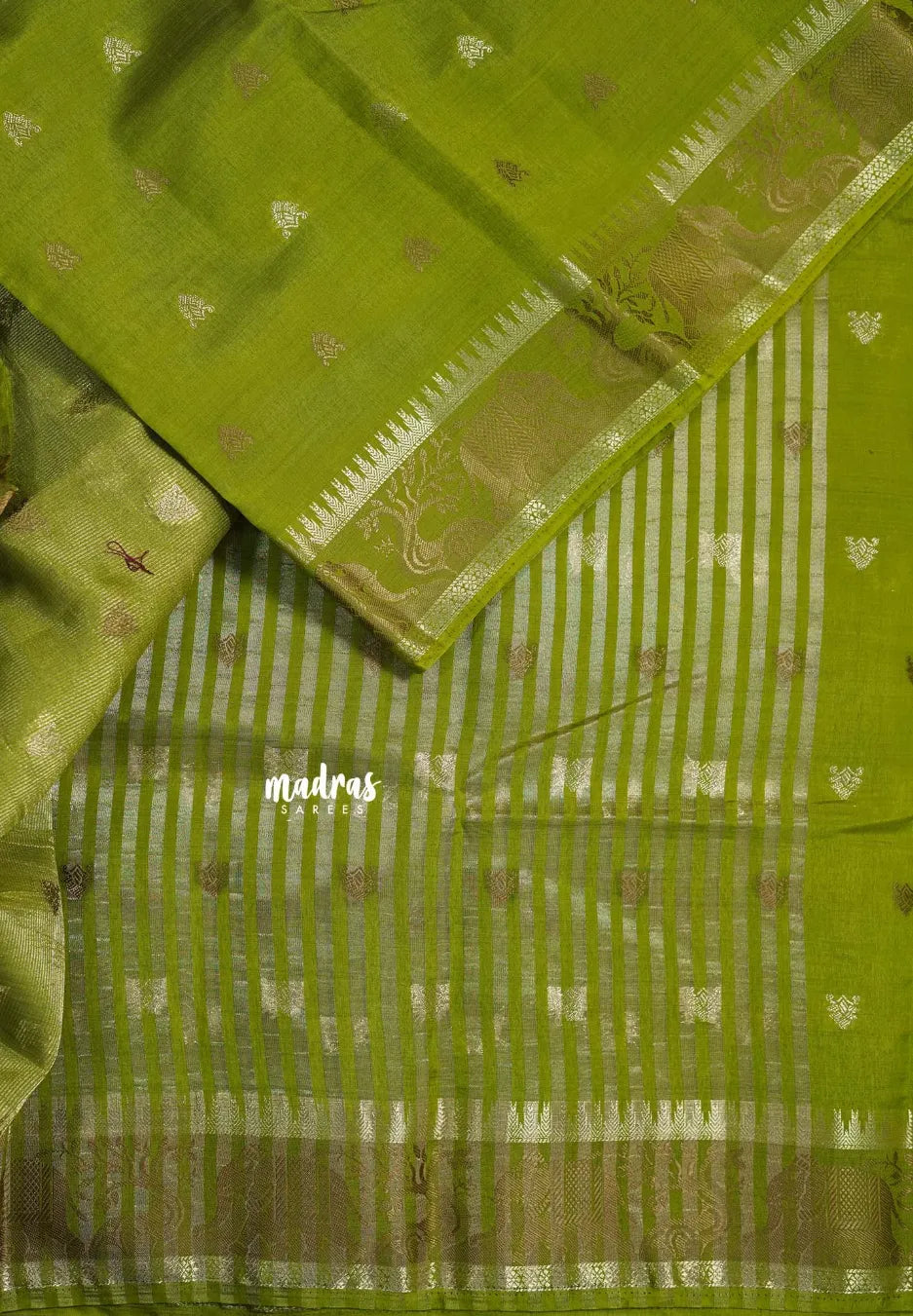 Pretty Parrot Green - Raaga - Semi Tussar Raaga with Buttas and Elephant Thread Border - Best for Festive Wear